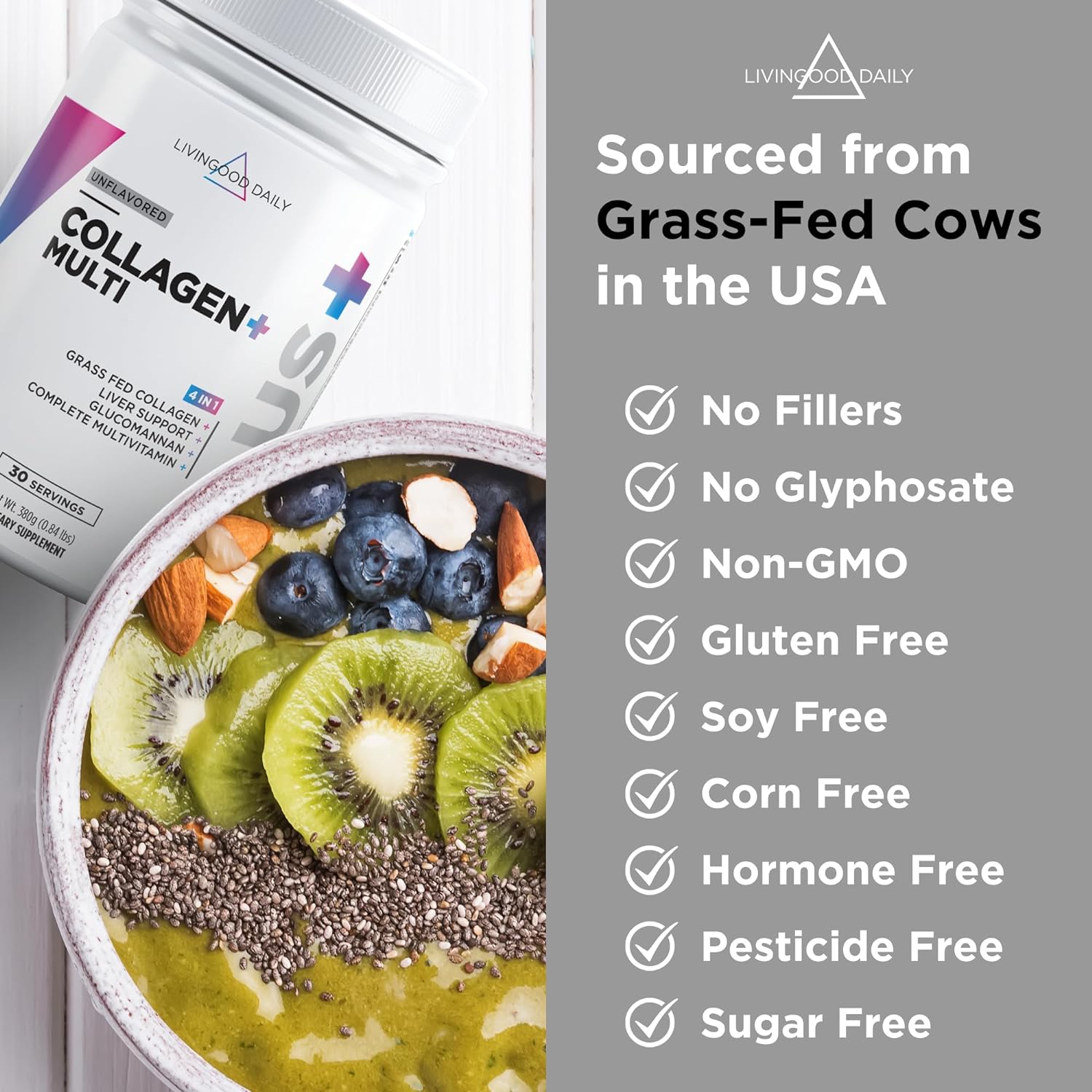 Livingood Daily Unflavored Collagen Powder, 34 Servings - Collagen Protein Powder (Collagen Type 1 And 3) Plus Multivitamin, Milk Thistle & Glucosamine - Hydrolyzed Collagen Peptides - 15.10Oz