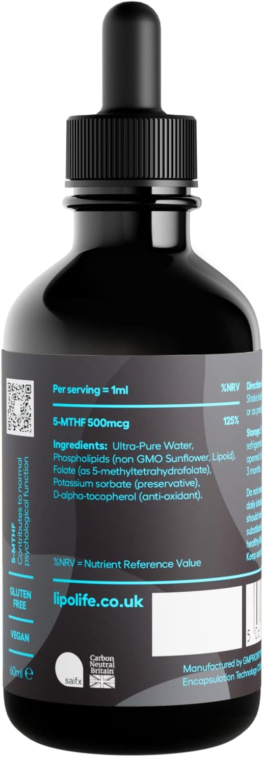 500mcg of folate per 1ml serving in a highly bioavailable liposomal food supplement