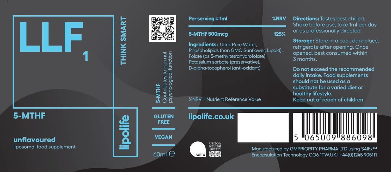 Llf1 - Liposomal 5-Mthf, Folate (Folic Acid) Supplement - 60Ml Lipolife