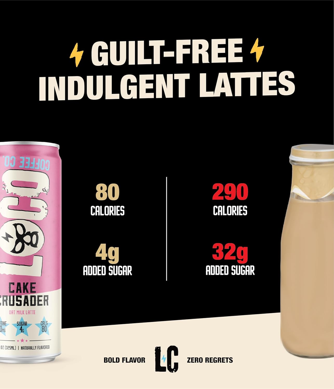 Loco Coffee Cake Oat Milk Latte Cold Brew Coffee [Cake] 11 Ounce Can, 12 Count | Medium Roast, 180Mg Caffeine | Gluten Free And Dairy Free | Low Sugar, Low Calorie Iced Coffee