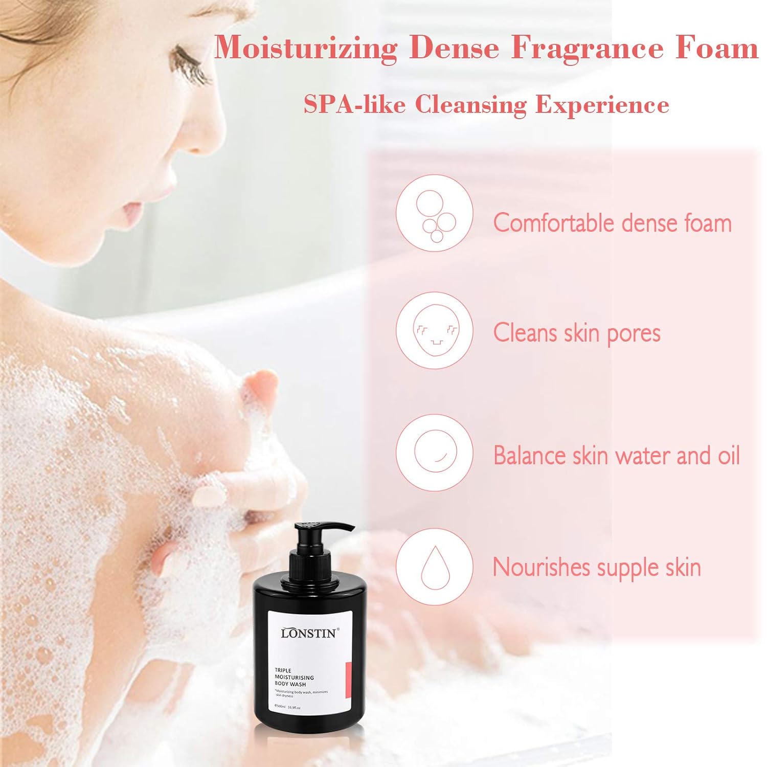 Lonstin Body Wash With Pump Moisturizing Body Wash For Dry Skin Natural Nourishers For Instantly Soft Skin And Lasting Nourishment Deep Moisture Cleanser Effectively Washes Away Bacteria, 16.9 Fl Oz