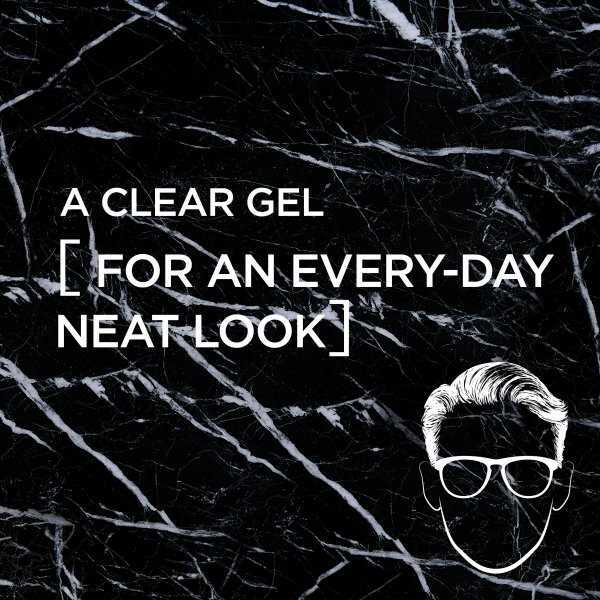 Discover the no mess clear gel. For neat men who want to shape their everyday style with ease