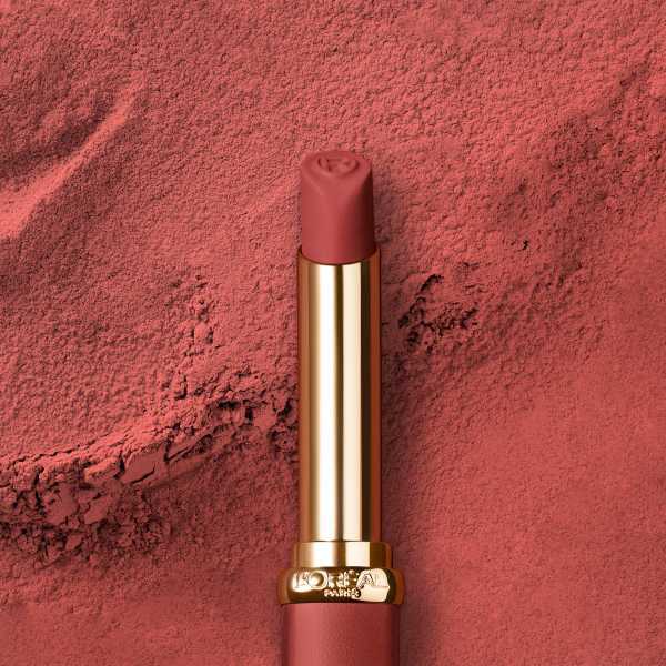 A matte with up to 16 hour wear infused with a caring formula in shade 600 Nude Audacious, infused with hyaluronic acid, to keep lips feeling moisturised all day