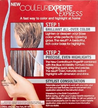 Couleur Experte is the only at-home dual-system coloring kit that combines in just one box permanent base color with harmonizing highlights. Thanks to perfectly coordinated shades, you can achieve a rich, elegant, salon-like look in just two easy steps,Fast Color And Highlights At Home: Couleur Experte is the only at-home dual-system hair coloring kit that combines permanent base color and harmonizing highlights in one box for quick and easy application,2 Easy Steps: Thanks to perfectly coordinated shades, you can achieve a rich, elegant, salon-like look in 2 easy steps for brilliant all-over color and precise, even highlights in just 30 minutes,Ideal Hair Color: Discover your ideal hair color with our range of shades, products and formulas; Bold to subtle, temporary to permanent and dark to light; our hair dye delivers what you're looking for,Discover Color: We make an array of hair color products including gray concealer, root touch-up, brush-on highlights, temporary, permanent and semi-permanent color, ombre color and hair color remover,L'Oreal Paris: A leading total beauty care company based in Paris, France, we offer innovative products and unique expertise from beauty experts in makeup, skin care, hair care, styling and hair color