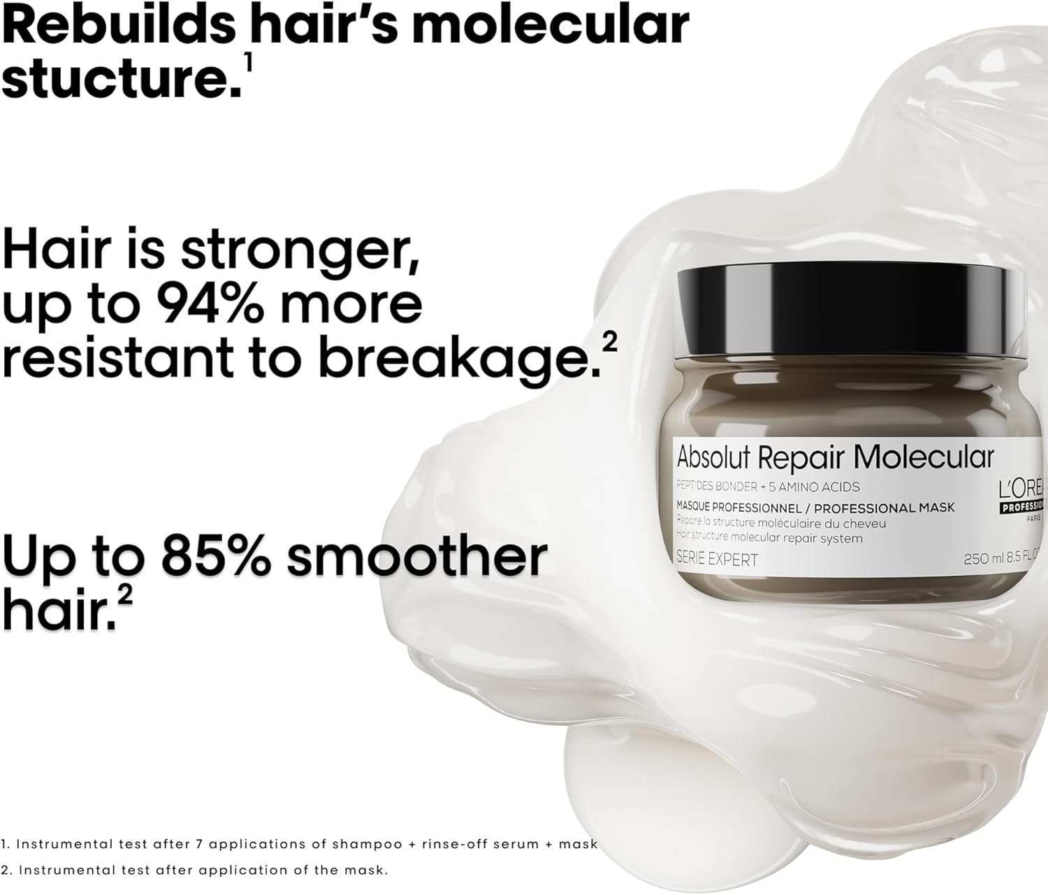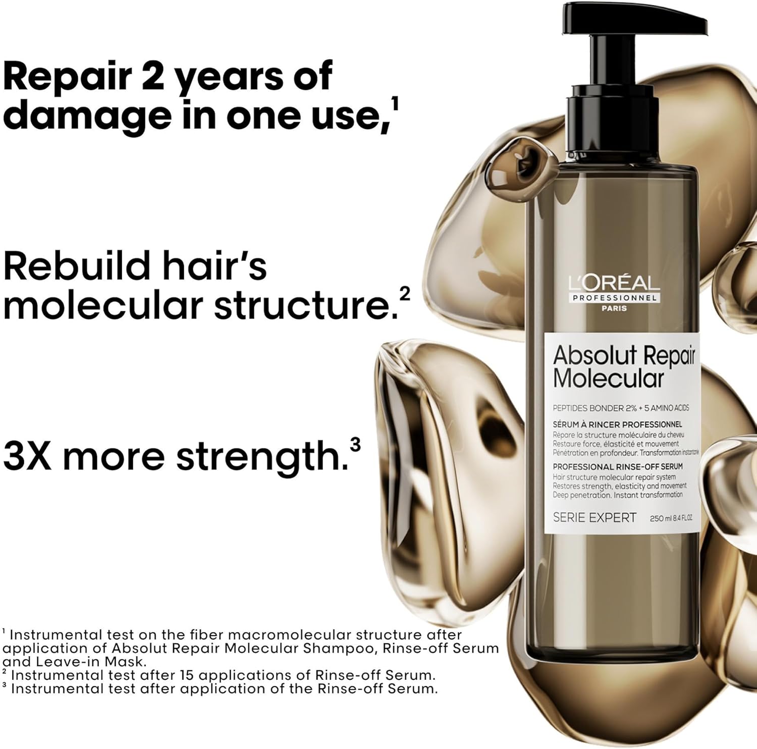 L'Oréal Professionnel Absolut Repair Molecular Rinse-Off Serum 250Ml & Rinse-Off Hair Mask Treatment 250Ml, For Very Damaged Hair