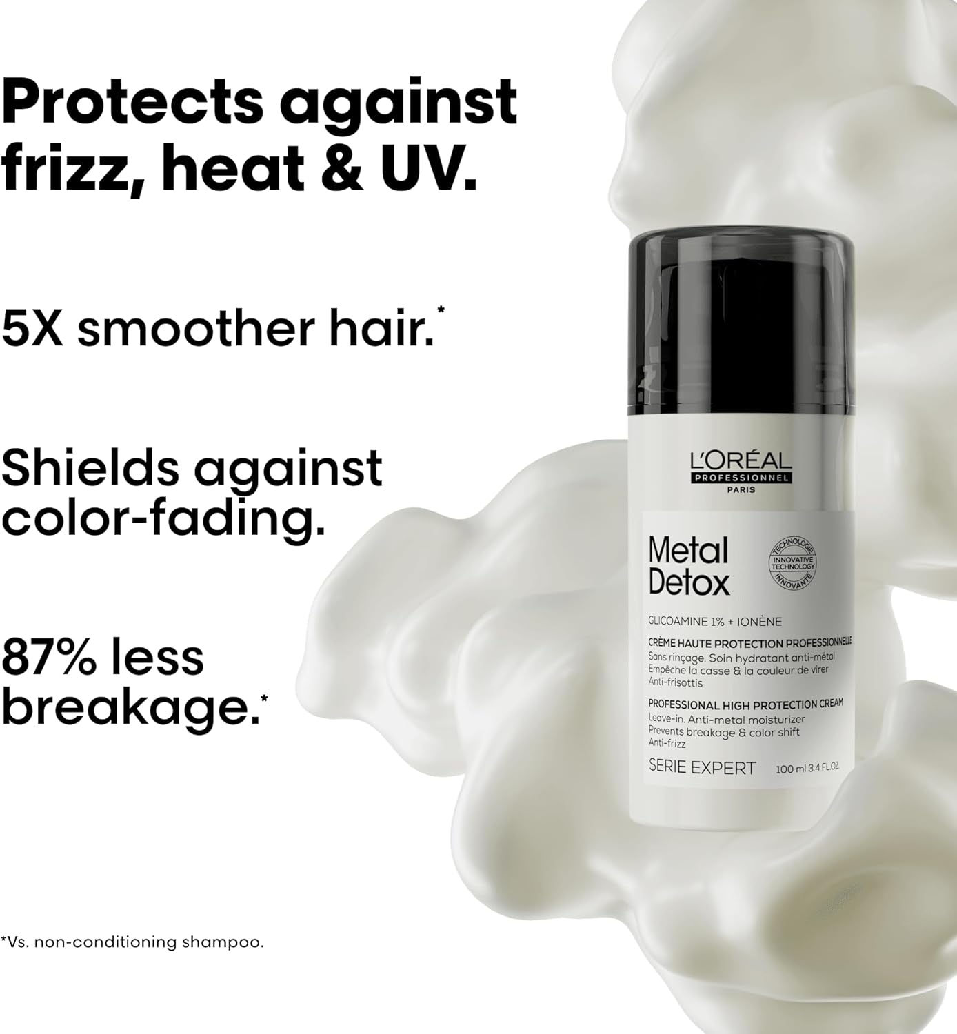 L'Oréal Professionnel Metal Detox Anti-Metal High Protection Cream, Leave-In Treatment For Damaged Hair, Hydrates, Helps Preserve Colour, Serie Expert, 100 Ml, 2.0 Grams, 100.0 Milliliters, Pack Of 1
