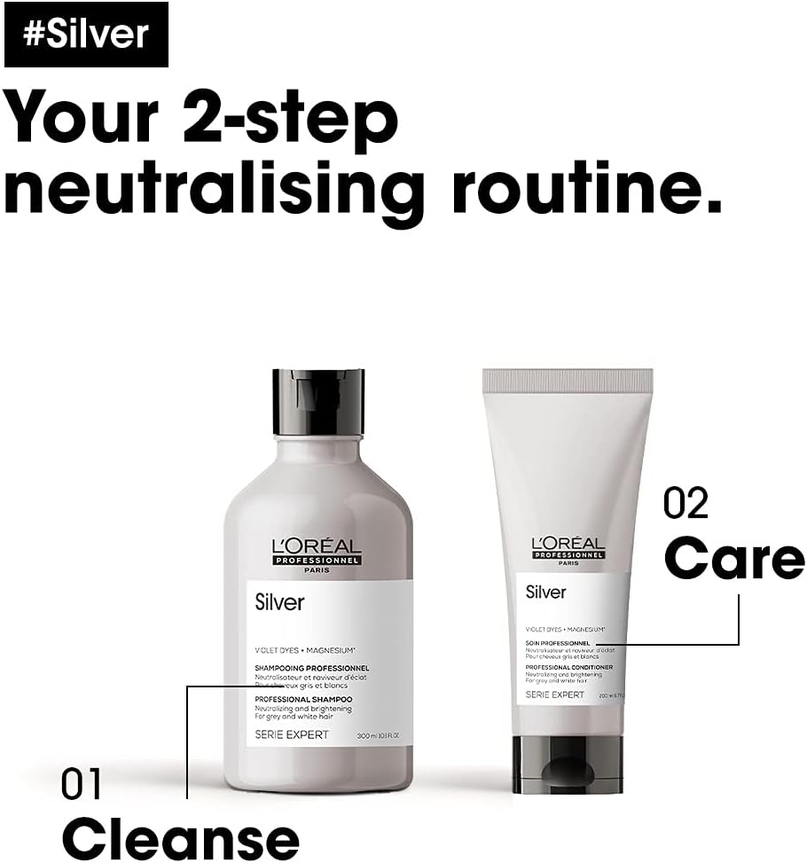 L'Oréal Professionnel Serie Expert Silver Shampoo And Conditioner Set, Neutralises Unwanted Brassy Tones, For Grey, White Or Light Blonde Hair, 300 Ml And 200 Ml