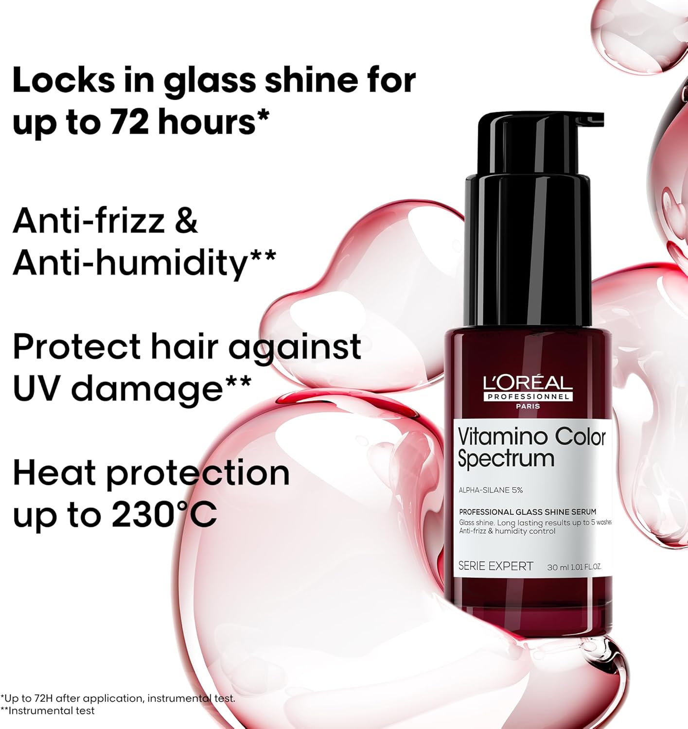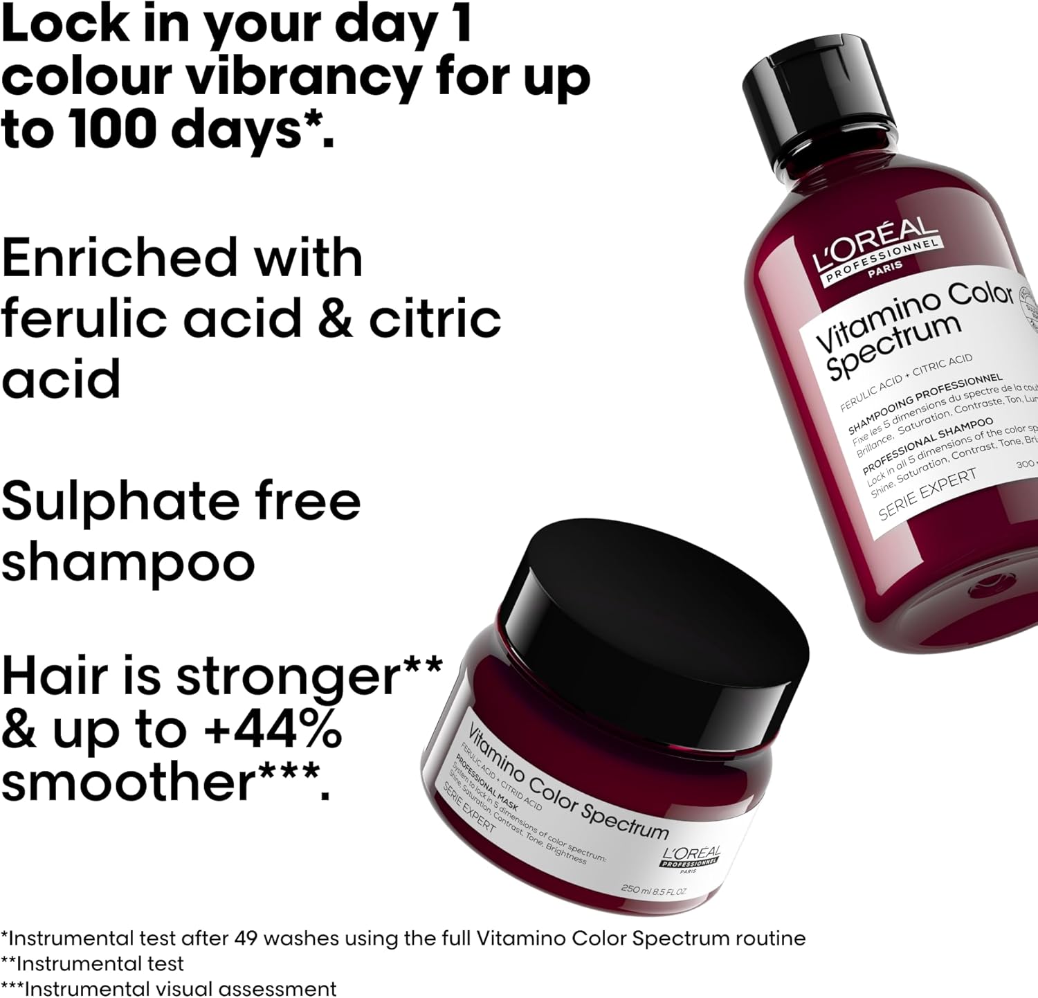 L'Oréal Professionnel Vitamino Color Spectrum Shampoo, Hair Mask And Glass Shine Serum 30Ml, For Coloured Hair, With Ferulic Acid + Citric Acid, Lock In Day 1 Colour Vibrancy For 100 Days
