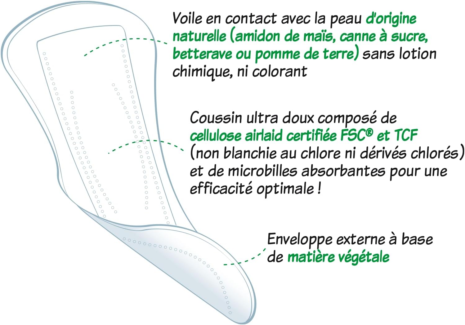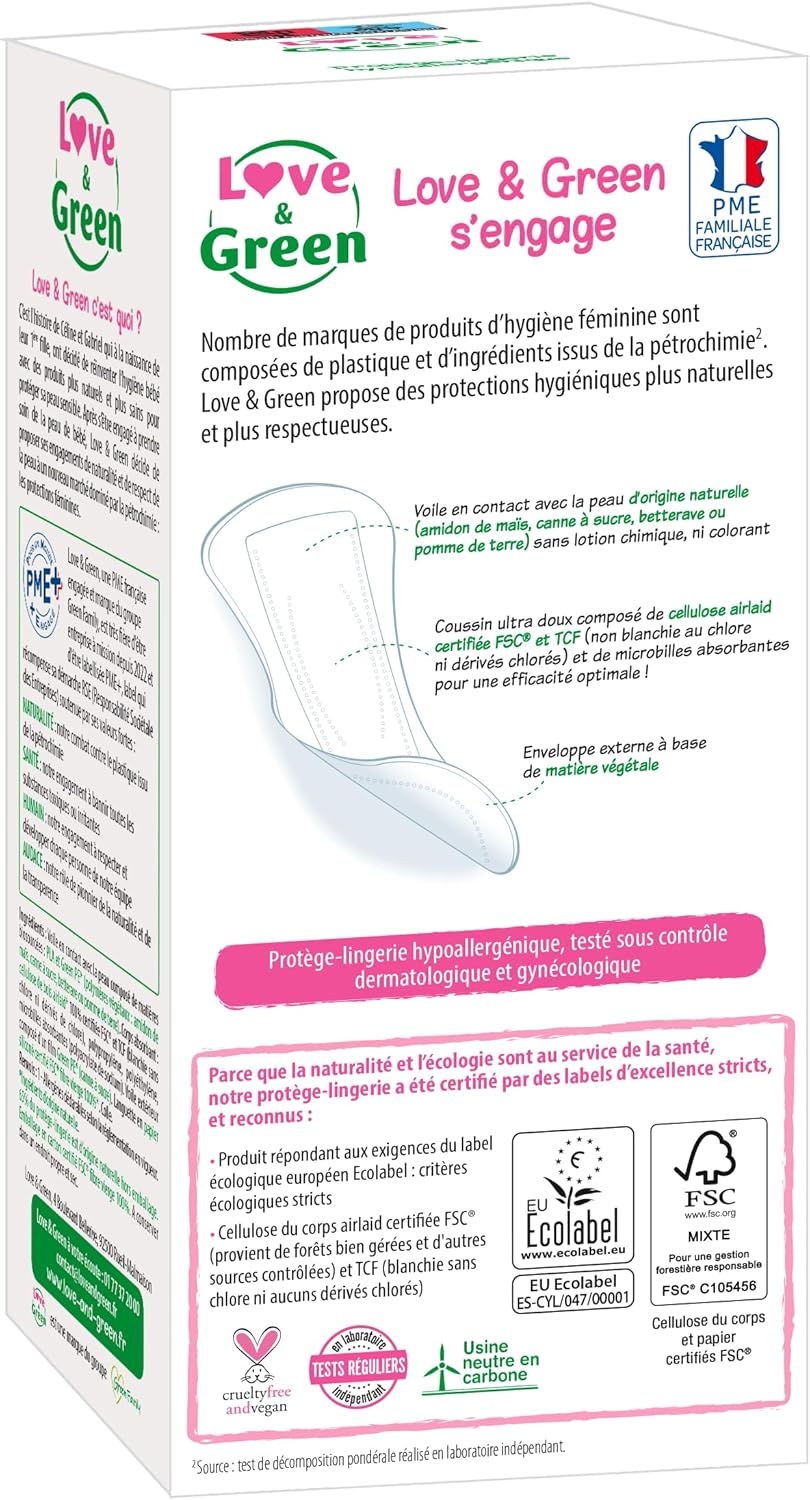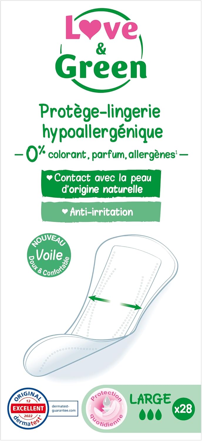 About this item Certified Ecolabel Free of unwanted ingredients: 0% plastic veil, dye, perfume, lotion, allergen 100% natural skin contact veil, unlike almost all female protectors. 70% biodegradable natural materials* Extra thin and ultra absorbent Hypoallergenic, dermatologically and gynecologically tested › See more product details,Certified Ecolabel Free of unwanted ingredients: 0% plastic veil, dye, perfume, lotion, allergen,100% natural skin contact veil, unlike almost all female protectors,70% biodegradable natural materials,Extra thin and ultra absorbent,Hypoallergenic, dermatologically and gynecologically tested