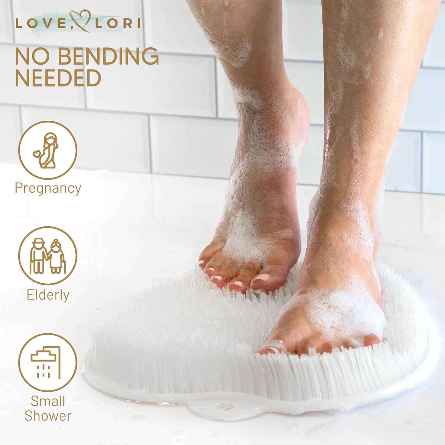 Love, Lori Foot Scrubber For Use In Shower - Foot Cleaner & Shower Foot Massager Foot Care For Men & Women To Soothe Achy Feet - Non Slip Suction (White) - Shower Accessories