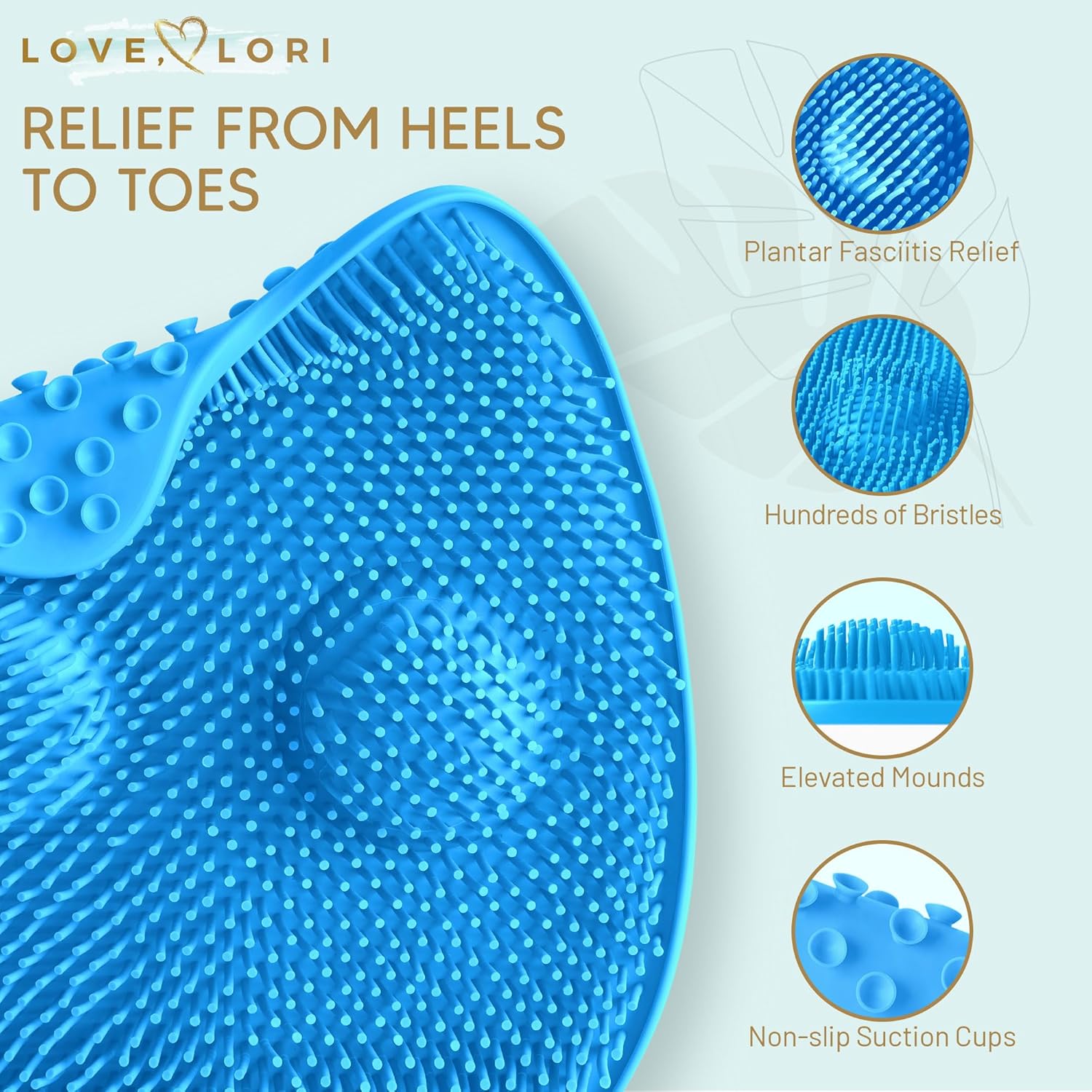 Love, Lori Plantar Fasciitis Relief Foot Massager, Foot Scrubbers For Use In Shower - For Foot Pain Relief, Heel Support, And Improved Circulation, Non-Slip W/Suction Cups - Large (Blue)