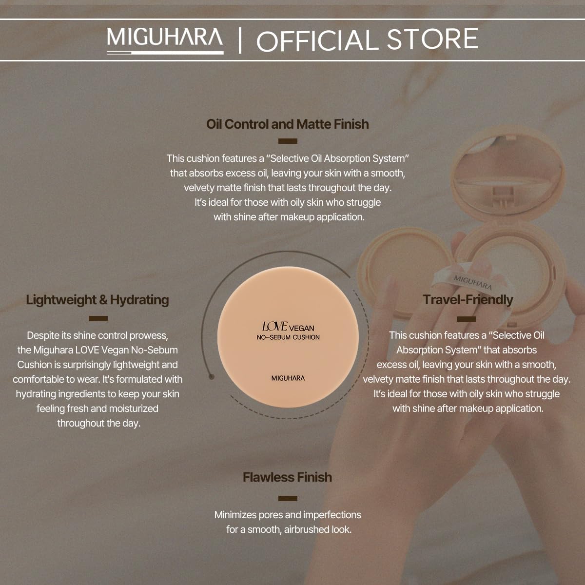 Love Vegan No-Sebum Cushion | K-Beauty No Sebum Cushion (15G/0.52 Oz.)