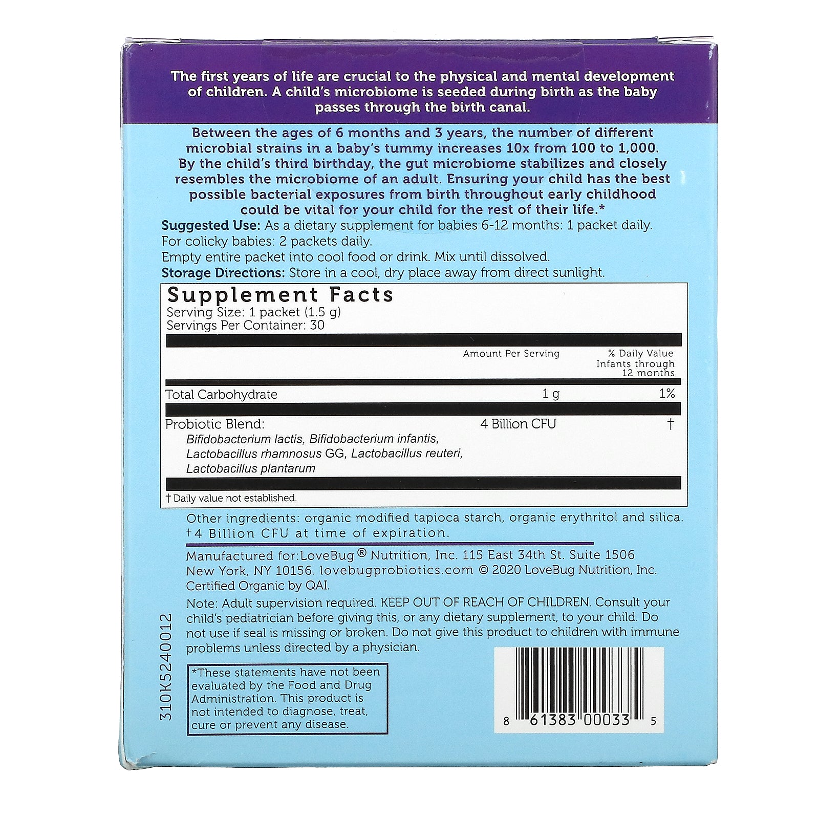 Lovebug Probiotics, Baby Probiotics, 6-12 Months, 4 Billion Cfu,Single Serve Stick Packs