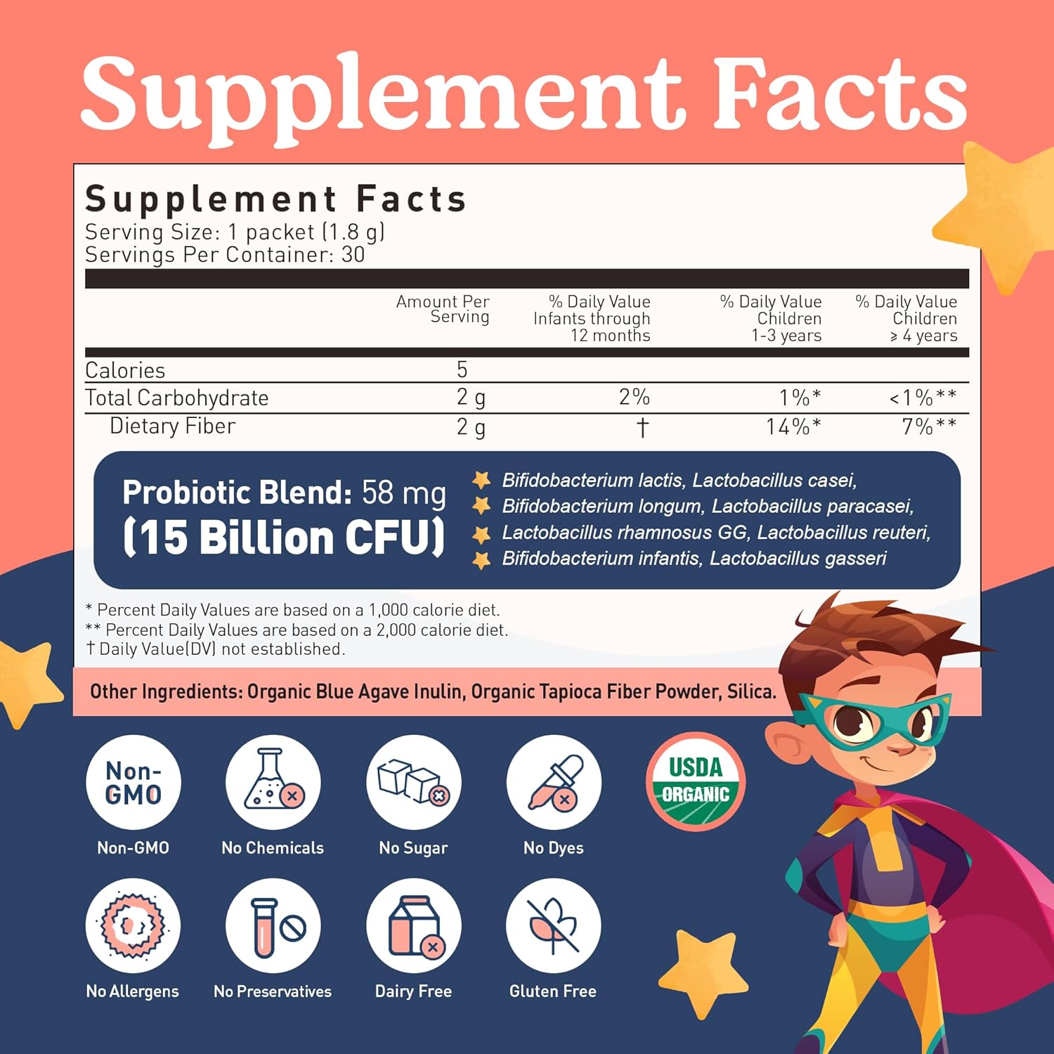 Lovebug Toddler Probiotics - Organic Probiotic For Kids & Toddler Constipation Relief, Stomach Discomfort And Softer Bowel Movements, Clear Dissolvable Powder, Ages 12 Months To 4 Year Olds - 30 Pack