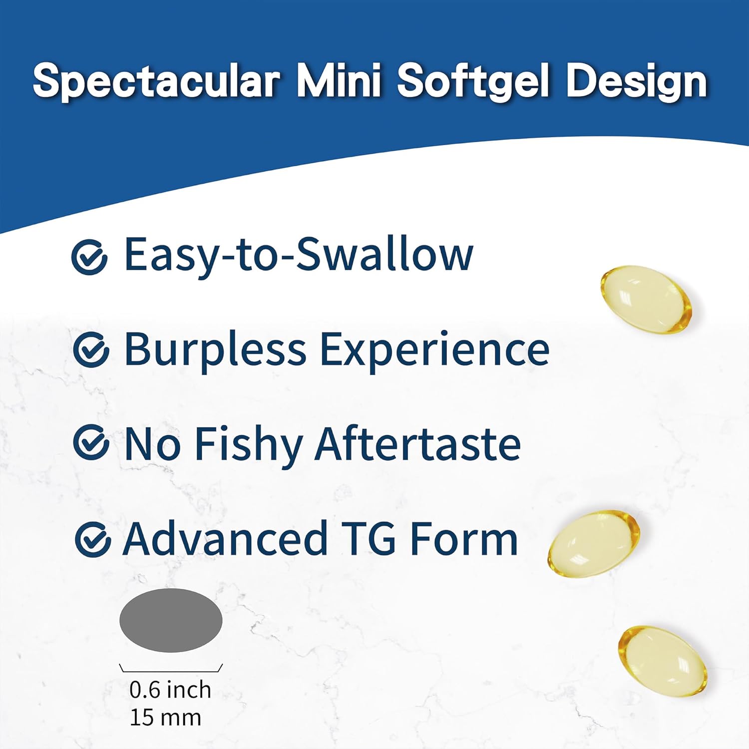 About this item ?PURE AND CLEAN NORWEGIAN ORIGIN?-Sourced exclusively from 100% Arctic cod, our Cod Liver Oil is a rich reserve of Omega-3 fatty acids, Vitamin A, and Vitamin D, delivering numerous health advantages. ?UNIQUE MINI SOFTGELS?-Designed in a small, easy-to-swallow size, our Cod Liver Oil provides high potency without the fishy taste. It’s also burpless and has no fishy aftertaste, acting as the best supplement for everyone. ?OPTIMAL ABSORPTION TG FORM?-Formulated in the triglyceride form, mirroring the natural composition, our Omega-3 fish oil ensures superior absorption without any fishy burps or aftertaste. ?OVERALL WELLNESS SUPPORT?-This Cod Liver Oil softgel blend is tailored to promote holistic well-being, supporting various facets of your body's health and vitality, while also fostering support immune system function. ?MANUFACTURED WITH EXCELLENCE?-Proudly crafted in the USA within a cutting-edge facility that complies with cGMP standards and refined through molecular distillation to ensure purity, our product contains no added colors, artificial flavors, or preservatives, and is gluten-free. › See more product details,?PURE AND CLEAN NORWEGIAN ORIGIN?-Sourced exclusively from 100% Arctic cod, our Cod Liver Oil is a rich reserve of Omega-3 fatty acids, Vitamin A, and Vitamin D, delivering numerous health advantages,?UNIQUE MINI SOFTGELS?-Designed in a small, easy-to-swallow size, our Cod Liver Oil provides high potency without the fishy taste. It’s also burpless and has no fishy aftertaste, acting as the best supplement for everyone,?OPTIMAL ABSORPTION TG FORM?-Formulated in the triglyceride form, mirroring the natural composition, our Omega-3 fish oil ensures superior absorption without any fishy burps or aftertaste,?OVERALL WELLNESS SUPPORT?-This Cod Liver Oil softgel blend is tailored to promote holistic well-being, supporting various facets of your body's health and vitality, while also fostering support immune system function,?MANUFACTURED WITH EXCELLENCE?-Proudly crafted in the USA within a cutting-edge facility that complies with cGMP standards and refined through molecular distillation to ensure purity, our product contains no added colors, artificial flavors, or preservatives, and is gluten-free