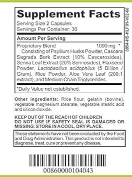 Low Fodmap Herbal Laxative Capsules Glp1 Support Natural Gentle Laxative Pills To Cleanse Colon & Support Digestive System With Probiotics, Psyllium Husk, Senna Leaf & Cascara Sagrada