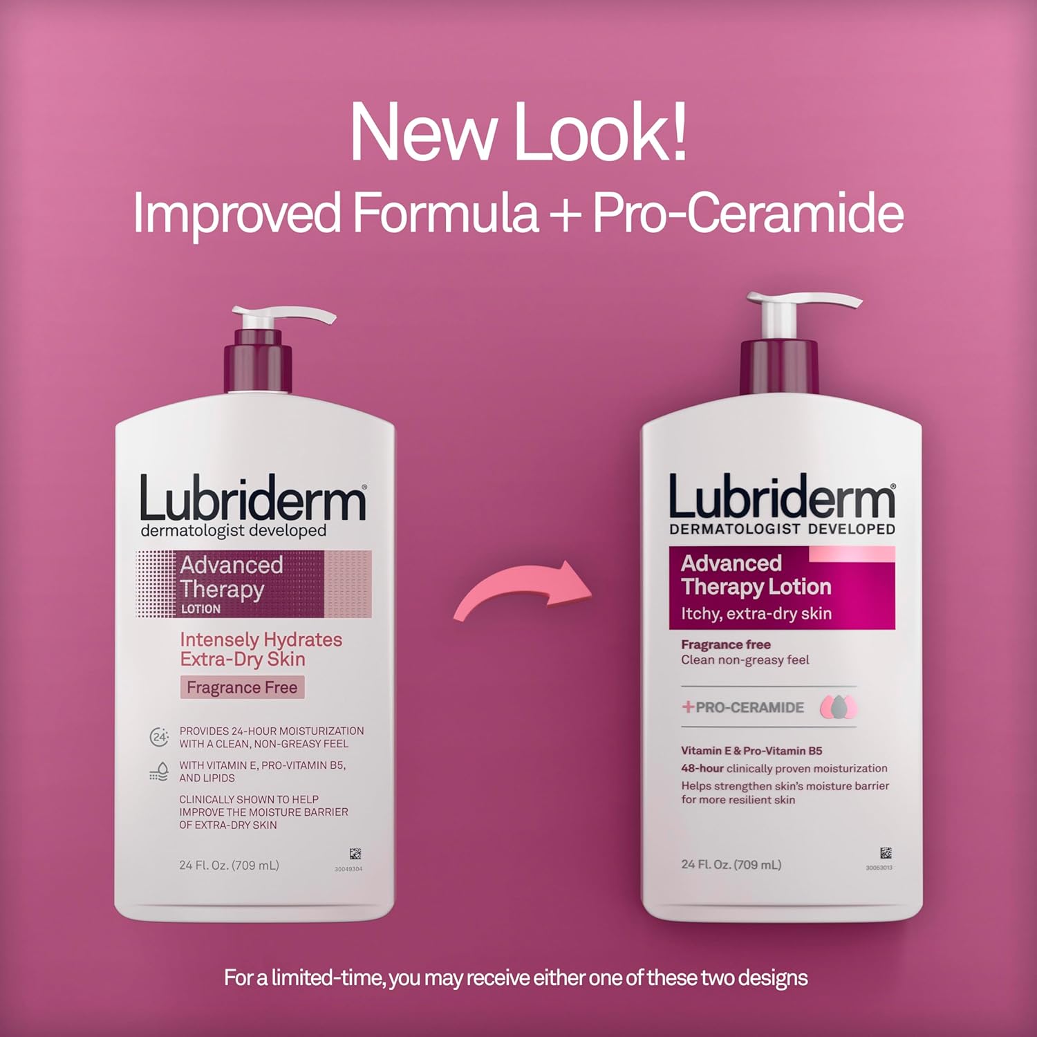 Lubriderm Advanced Therapy Daily Moisturizing Lotion Soothes And Helps Relieve Extra-Dry Skin. From A Dermatologist-Developed Brand, This Lotion Is Clinically Shown To Help Moisturize For 24 Hours, And Transform Dry Skin Into Healthy-Looking, More Resilient Skin. Formulated With Vitamins E And B5 Plus Skin-Essential Lipids Naturally Found In Healthy Skin, This Moisturizing Lotion Replenishes And Strengthens Your Skin'S Moisture Barrier. Plus, Its Formula Is Non-Greasy With A Clean, Comfortable Feel