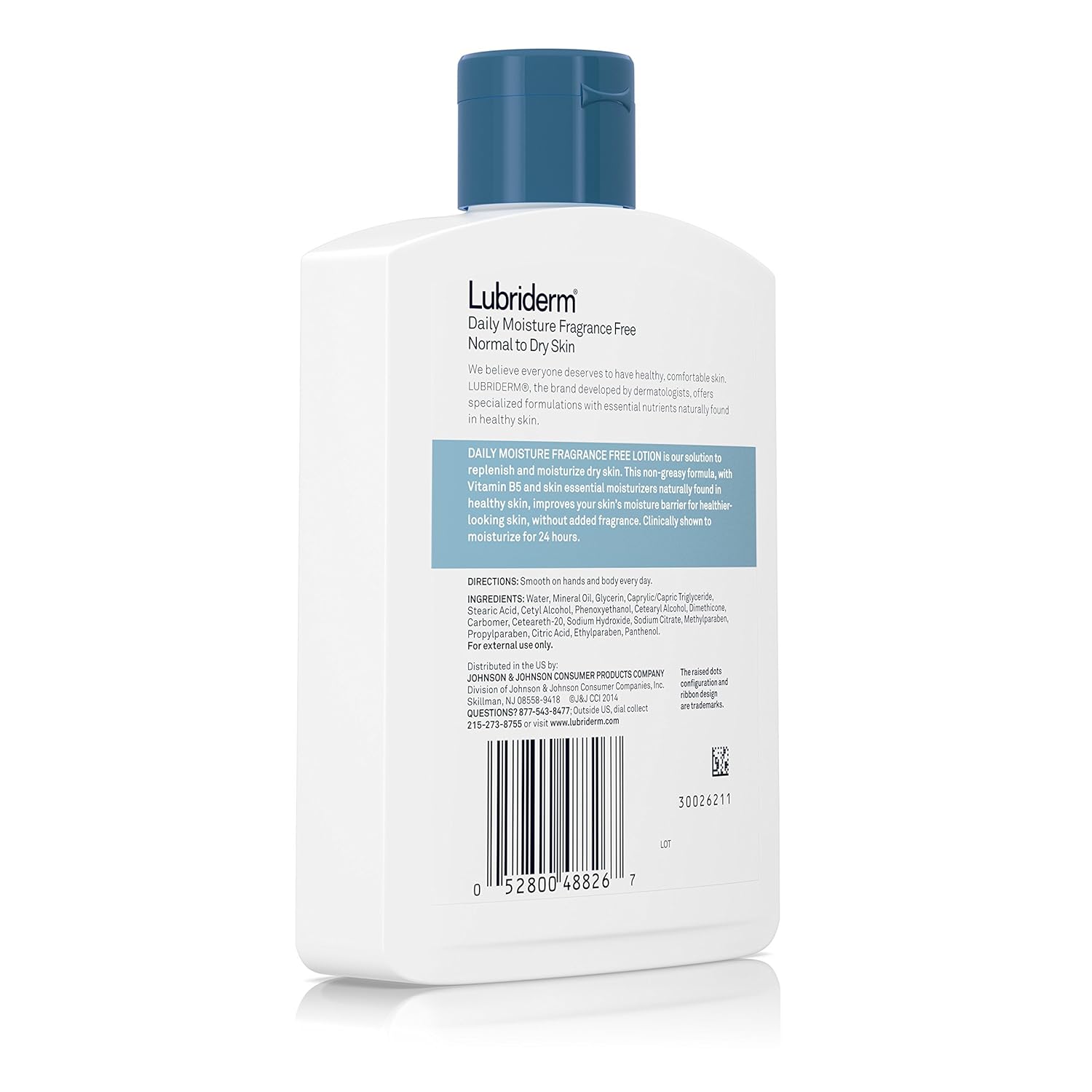 Ideal For Normal-To-Dry Skin Types, Lubriderm Daily Moisture Fragrance-Free Body Lotion Plus Pro-Ceramide, Shea Butter, And Glycerin Is Our Solution To Replenish And Moisturize Dry Skin That'S Suitable For All Skin Types. From A Dermatologist Developed Brand, This Daily Moisturizing Lotion Provides Clinically Proven 24-Hour Hydration And Helps Achieve Healthier-Looking Skin. It Is Formulated With Pro-Ceramide And Glycerin To Help Restore Your Skin'S Moisture Barrier. This Lotion Has A Non-Greasy, Unscented Formula That Is Suitable For The Body And Face And Won'T Clog Your Pores. The Fast-Absorbing Formula Of This Fragrance-Free Body Lotion Is Suitable For All Skin Types, Even Sensitive Skin. The Allergy- And Dermatologist-Tested Lightweight Body Lotion Is Free Of Parabens, Phthalates, And Dyes. To Use, Smooth On Face, Hands, And Body Daily Or As Directed By A Physician. Daily Moisture Lotion From Lubriderm, A Dermatologist Developed Brand