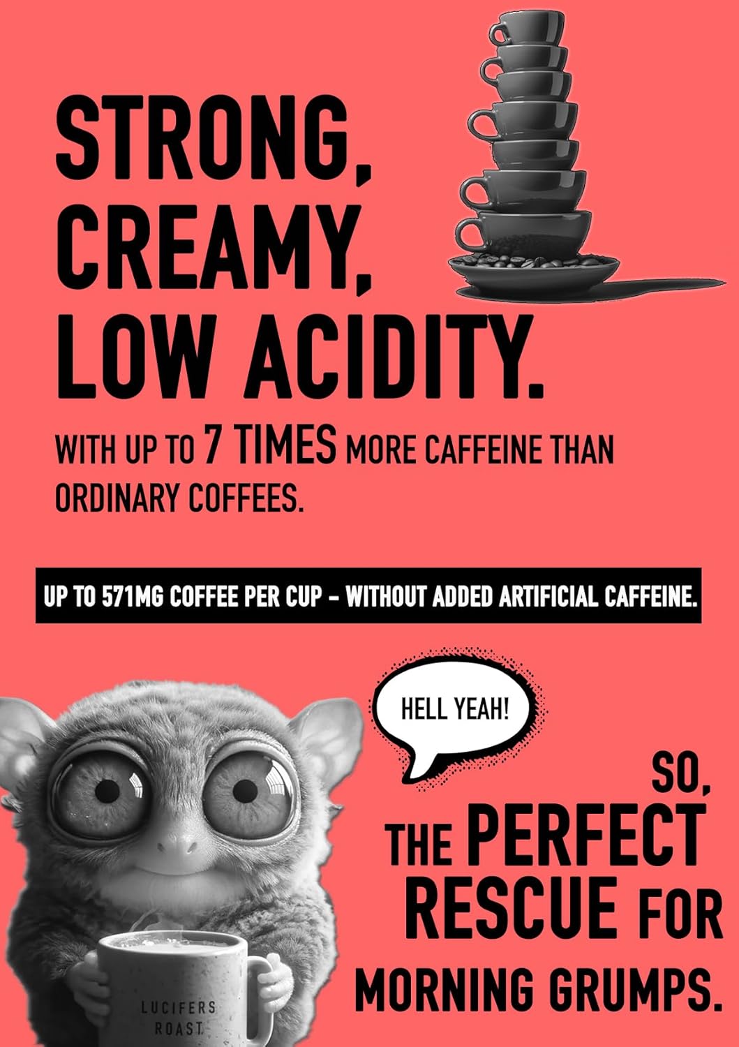 Strength - With A Caffeine Content Of More Than 2.8% Or With Up To 571Mg Caffeine (250Ml), Our Beans Have Up To 7X More Caffeine Than Conventional Coffees And Are Therefore Demonstrably Among The Strongest Coffees In The World