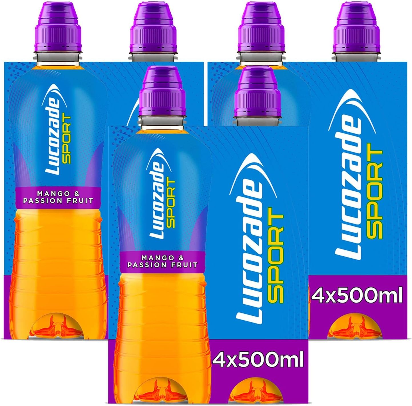 Product Description Lucozade Mango and Passion Fruit Flavour Sport Drink is an isotonic sports drink which provides carbohydrates and electrolytes to enhance hydration and help maintain performance during prolonged endurance exercise. At the limits of your ability you need to replace the electrolyses you lose in sweat. It keep your body hydrated and give your body fuel. It enhances hydration fuels performance. It is available in a 500 ml bottle. Its shelf life is 6 months. Ingredients Water, Glucose Syrup, Acid (Citric Acid), Acidity Regulator (Sodium Citrate), Stabiliser (Acacia Gum), Flavourings, Antioxidant (Ascorbic Acid), Sweeteners (Acesulfame K, Sucralose), Vitamins (Niacin, Pantothenic Acid, B6, B12), Colour (Beta Carotene) P.when('A').execute(function(A) { A.on('a:expander:toggle_description:toggle:collapse', function(data) { window.scroll(0, data.expander.$expander[0].offsetTop-100); }); }); Directions Once opened, store in the fridge and finish in four days. Best consumed chilled Manufacturer Contact Information Lucozade Ribena Suntory Limited, 2 Longwalk Road, Stockley Park, Uxbridge, UB11 1BA. See more,Contains carbohydrates and coupled with electrolytes which helps your body to absorb fluid more effectively leading to better hydration^Electrolytes help to replace the sodium lost in sweat, which you are sure to do when exercising moderately^Keep your body hydrated^Give your body fuel^A delicious blend of mango and passion fruit flavours