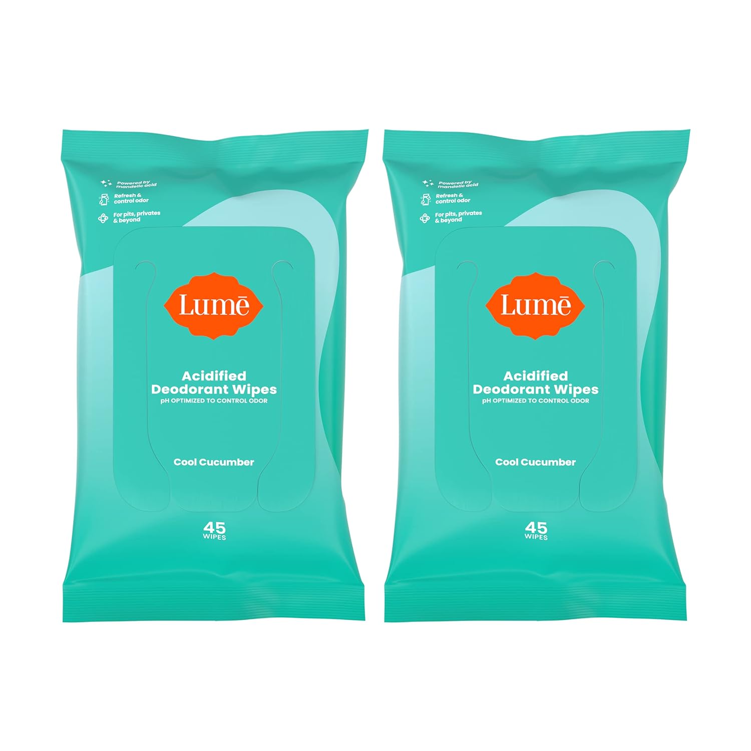Lume Acidified Deodorant Wipes - 24 Hour Odor Control - Aluminum Free, Baking Soda Free, Skin Loving - 45 Count (Pack Of 2) (Cool Cucumber)