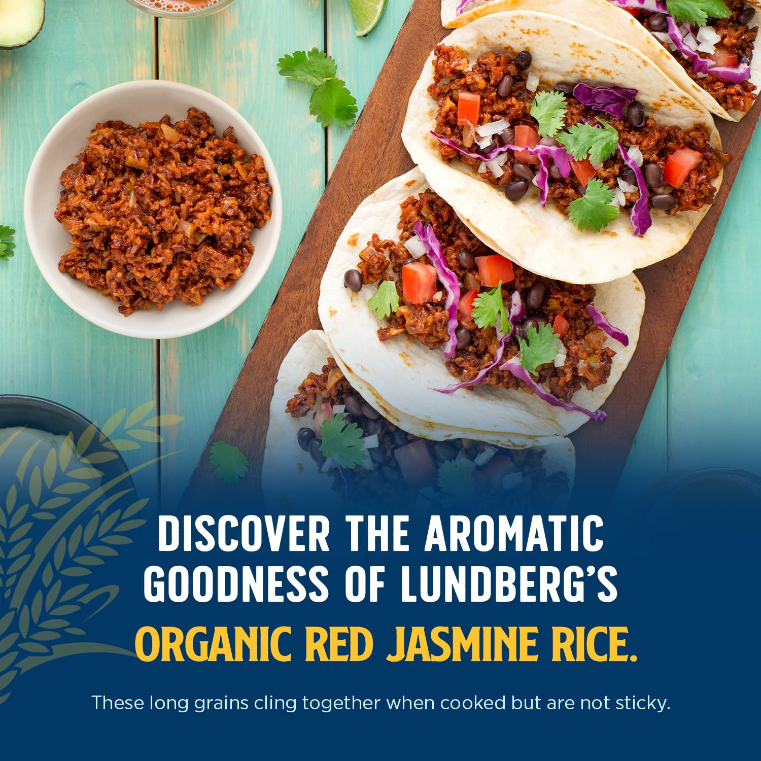 About this item LUNDBERG RICE FROM CALIFORNIA: This flavorful and fragrant red variety of organic jasmine rice is proudly grown in California by family-owned Lundberg Family Farms. GRAINS REMAIN SEPARATE: Red jasmine long grain rice retains its shape when cooked, resulting in non-sticky rice that is easily fluffed with a fork. HEALTHY MEALS START WITH LUNDBERG RICE: With so many versatile ways to enjoy Lundberg California Red Jasmine Gourmet Rice in your healthy food recipes, stock up on our resealable 1-pound bags (10 servings each). A RICE YOU CAN TRUST: Certified organic, Non-GMO Project Verified, and certified gluten-free, Lundberg rice is grown with regenerative and organic farming practices. LUNDBERG RICE IS INTENTIONALLY CRAFTED FOR YOU AND THE PLANET: Lundberg Family Farms is committed to being a responsible steward of the land and to producing rice that is nutritious, delicious, and nourishes both people and the planet. See more product details,LUNDBERG RICE FROM CALIFORNIA: This flavorful and fragrant red variety of organic jasmine rice is proudly grown in California by family-owned Lundberg Family Farms,GRAINS REMAIN SEPARATE: Red jasmine long grain rice retains its shape when cooked, resulting in non-sticky rice that is easily fluffed with a fork,HEALTHY MEALS START WITH LUNDBERG RICE: With so many versatile ways to enjoy Lundberg California Red Jasmine Gourmet Rice in your healthy food recipes, stock up on our resealable 1-pound bags (10 servings each),A RICE YOU CAN TRUST: Certified organic, Non-GMO Project Verified, and certified gluten-free, Lundberg rice is grown with regenerative and organic farming practices,LUNDBERG RICE IS INTENTIONALLY CRAFTED FOR YOU AND THE PLANET: Lundberg Family Farms is committed to being a responsible steward of the land and to producing rice that is nutritious, delicious, and nourishes both people and the planet