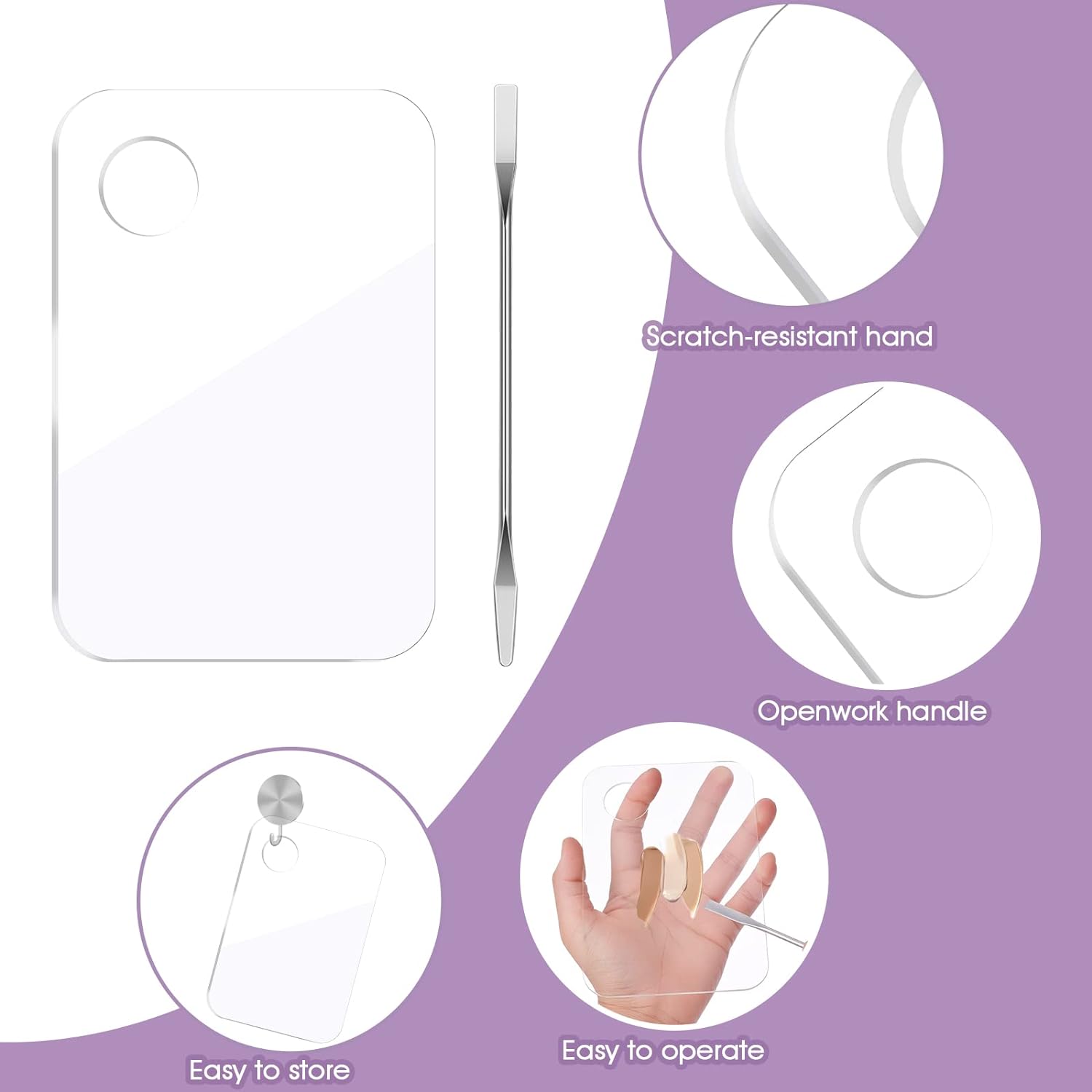 Lusofie 2Pcs Acrylic Make Up Foundation Mixing Palette with 2Pcs Cosmetic Spatula Transparent Cosmetic Mixing Palette Tray for Nail Art Pigment Blending Mixing