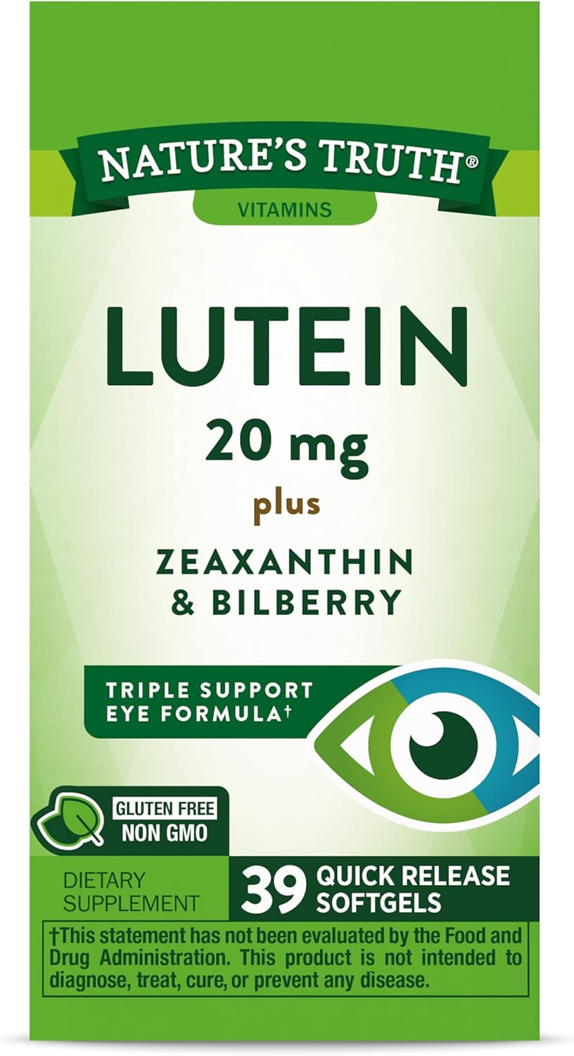 Lutein And Zeaxanthin Supplement | 20Mg | 39 Softgels | With Bilberry | Non-Gmo & Gluten Free | By Nature'S Truth