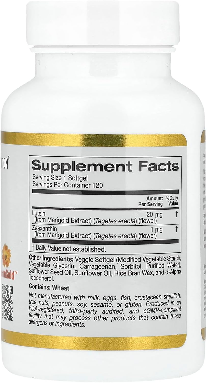 Lutein With Zeaxanthin, Extracted From Marigold Flowers, Supports Overall Macular Health, Non Gmo, Soy Free, Gluten Free, 20 Mg, 120 Veggie Softgels