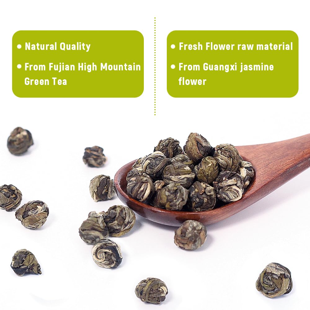Lwxljmjzc100G/3.53Oz Jasmine Dragon Pearls Loose Leaf Green Tea With Pleasant Jamsine Aroma-Jasmine Tea Suitable For Both Hot And Cold