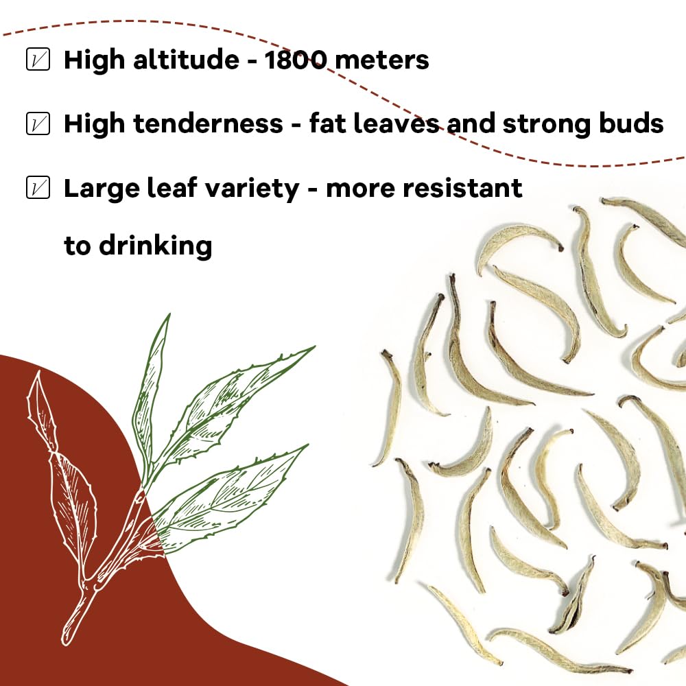 Yunnan Sinlver NeedleSilver Needle White Tea Is A Slightly Fermented Tea, Which Is Named After Its Shape, Whose Color Is Silver Because Of Its Conspicuously Tea Shape Likes A Needle. Grown In The Yunnan, China