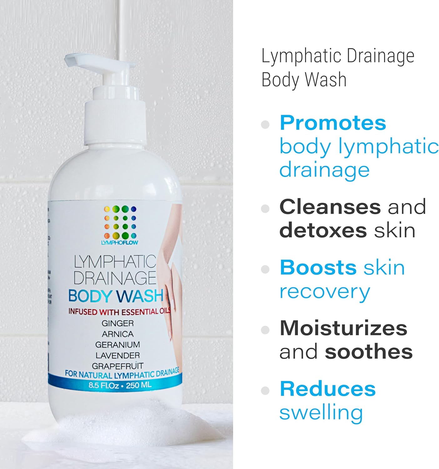 WHAT IS IT This Body Wash was designed by Licensed Manual Lymphatic Drainage Massage Specialist and Board Certified Plastic Surgeon to facilitate daily body cleansing and total body and skin detox by enhancing natural drainage of lymphatic system. Natural shower gel was boosted by most effective organic essential oils that promote lymph flow