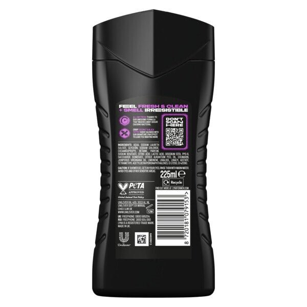 Scrub Up To Excite Your Senses And Kick-Start Your Day With Lynx Excite Bodywash. You Never Know What’S Just Around The Corner. Or Who. So, You Need To Smell Your Absolute Best Whenever, Wherever. This Moisturising Shower Gel Blends Tempting Coconut And Black Pepper Notes For A 12-Hour Revitalising Scent That Lights That Fire In Your Belly. Lynx Excite Body Wash For Men Not Only Dispels Odour And Keeps You Smelling 100% Irresistible All Day, But Also Contains 100% Plant-Based Prebiotics And 5X More Moisturisers** To Hydrate Your Skin Every Time You Shower. Squeeze It Into Your Hands And Work Into A Rich, Creamy Lather. Massage It Over Your Skin And Rinse Thoroughly, Revealing Clean, Fresh-Smelling Skin. Boost Your Fragrance Game With Our Range Of Shower Gels. Whatever Your Vice, We’Ve Got The Bodywash To Give You That Epic Burst Of Freshness So You Feel Charged Up And Ready For Whatever Comes Your Way. By 2025, We Aim For All Our Packaging To Be Recyclable Or To Include Recycled Materials; Our Body Cleanser Bottles Are Already Made From 100% Recycled Plastic* – Please, Do Your Part And Recycle. Welcome To The Future. It Smells Amazing. Lynx. *Excluding Cap **Vs Lynx’S + Series Shower Gel Variants Lynx Excite Body Wash For Men Hydrates Your Skin And Keeps You Feeling And Smelling Fresh All Day This Moisturising Shower Gel Features A Crisp Coconut And Black Pepper Scent The Body Wash Washes Away Bacteria And Provides Up To 12 Hours Of Revitalising Fragrance Our Body Cleanser Is Made With 100% Plant-Based Moisturisers To Keep Your Skin Feeling Irresistibly Soft, Naturally This Bodywash Is Dermatologically Tested, And The Bottle Is Made From 100% Recycled Plastic* Loving This Shower Gel? Lynx Excite Is Also Available As A Bodyspray