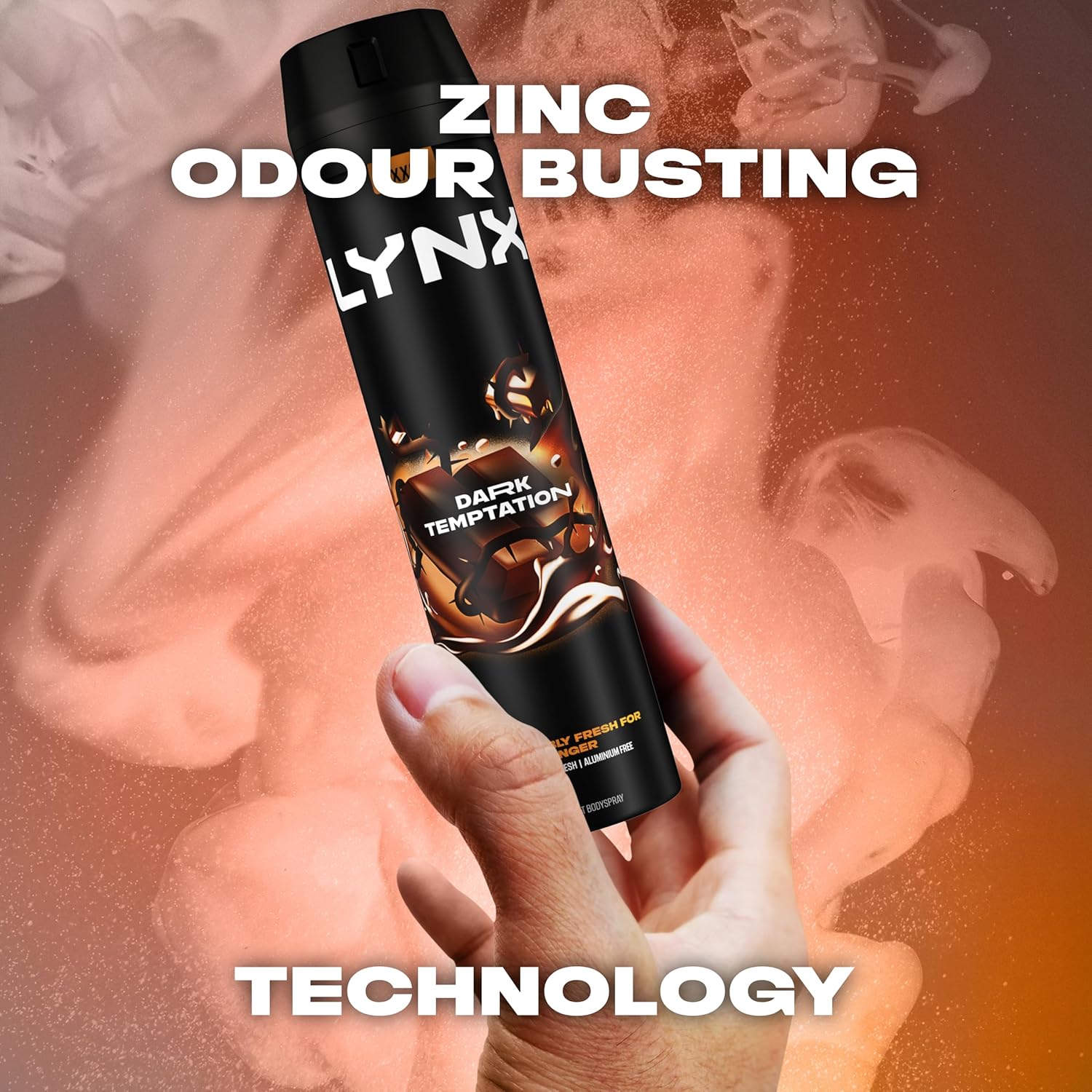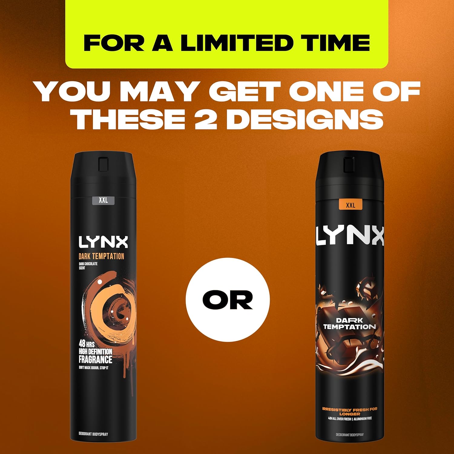 Lynx Dark Temptation Aerosol Body Spray Men'S Deodorant Spray With A Smooth Dark Chocolate Scent For 48 Hours Of Odour-Busting, High Definition Fragrance 250 Ml