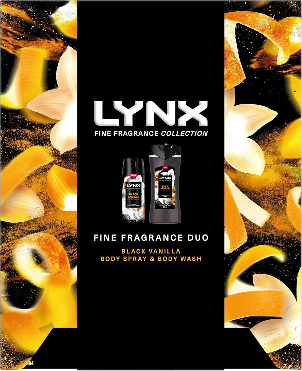 Lynx Fine Fragrance Collection Black Vanilla Duo Deodorant Gift Set Body Wash & Body Spray Perfect Gifts For Him 2 Piece