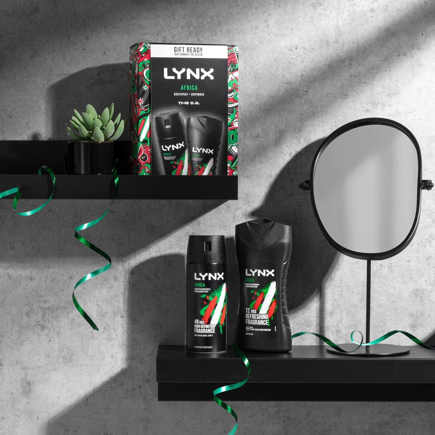 Lynx The O.G. Africa Duo 48Hrs Odour Protection Body Spray 150 Ml And 12Hrs Refreshing Fragrance Body Wash 225 Ml 2 Pieces Ready To Wrap Gift Set For Him,2Pk