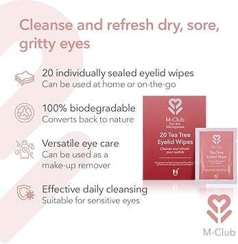 M-Club Tea Tree Eyelid Wipes - Biodegradable Eye Wipes - Suitable For Blepharitis, Dry Eyes, Mgd & Irritated Eyes - Individually Wrapped, Travel-Friendly, Ideal For Sensitive Eyes - 20 Pack