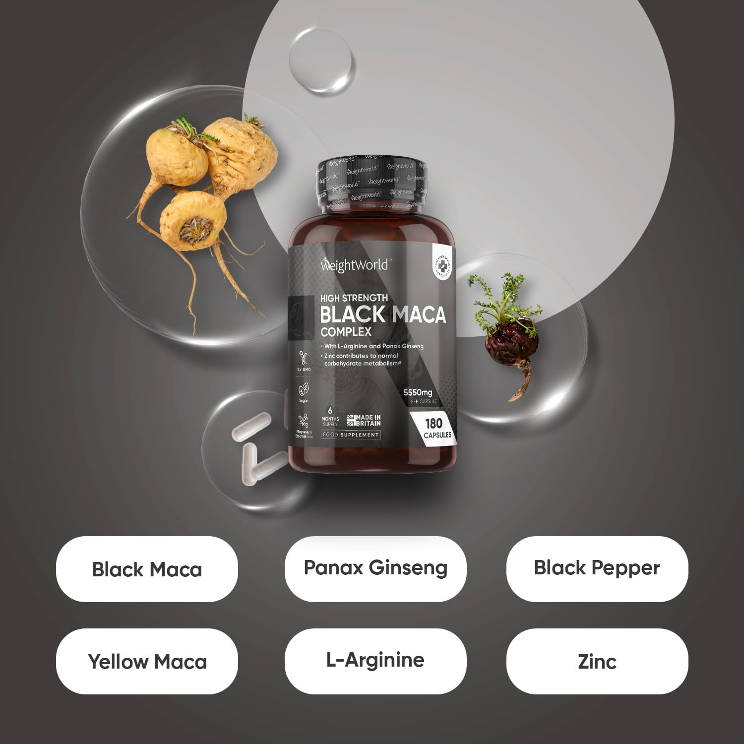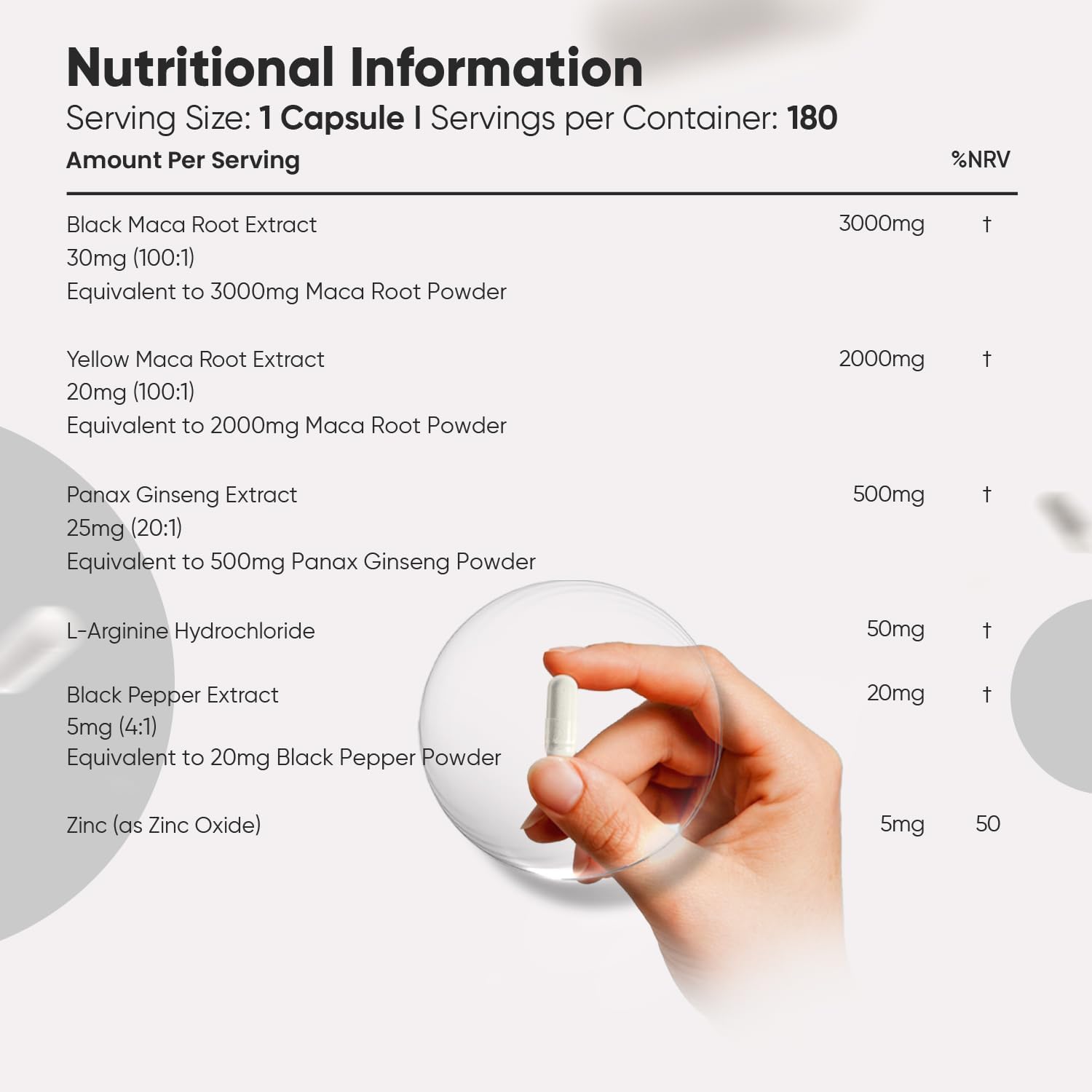 Maca Root Capsules 5550Mg - 180 Capsules - 6 Months Supply - Black & Yellow Maca With L-Arginine & Panax Ginseng - Zinc Contributes To Normal Fertility & Reproduction (Efsa) - For Men & Women