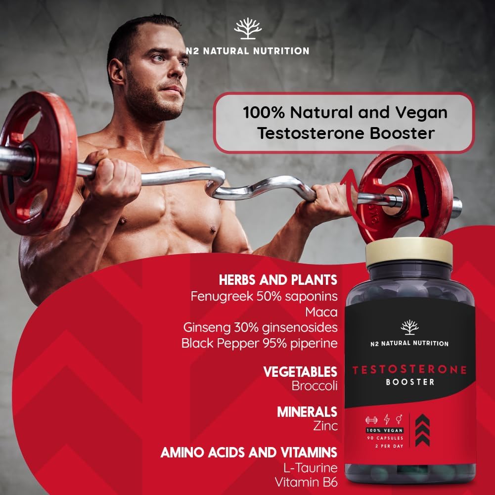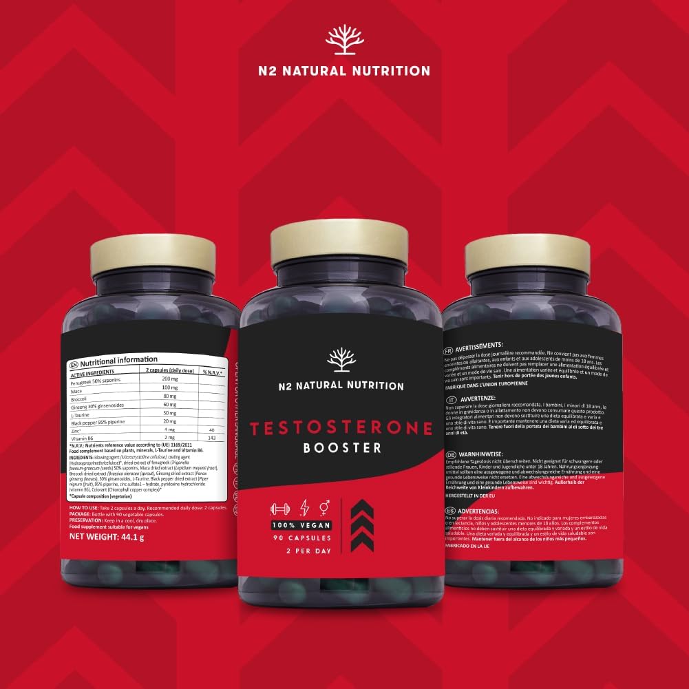 Maca, Vitamin B6, Ginseng, Zinc, L-Taurine, Black Pepper. 90 Plant-Based Capsules. Vegan Certified. N2 Natural Nutrition