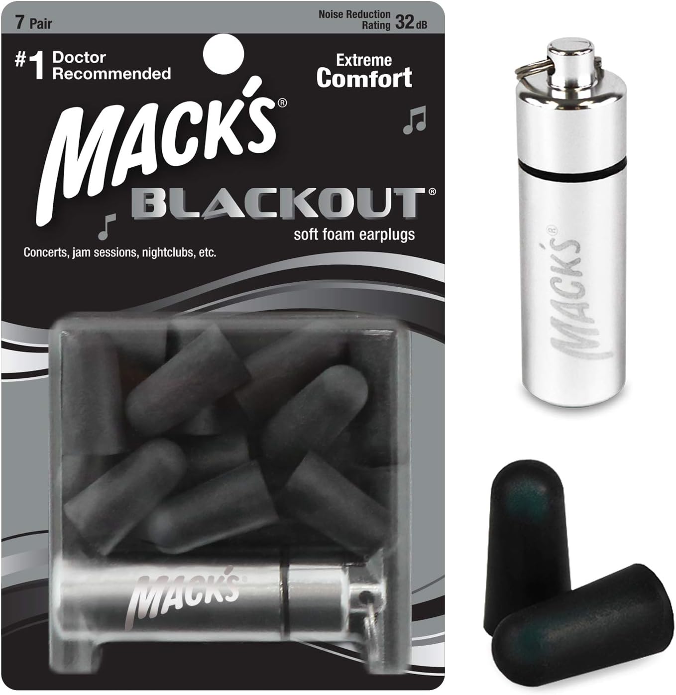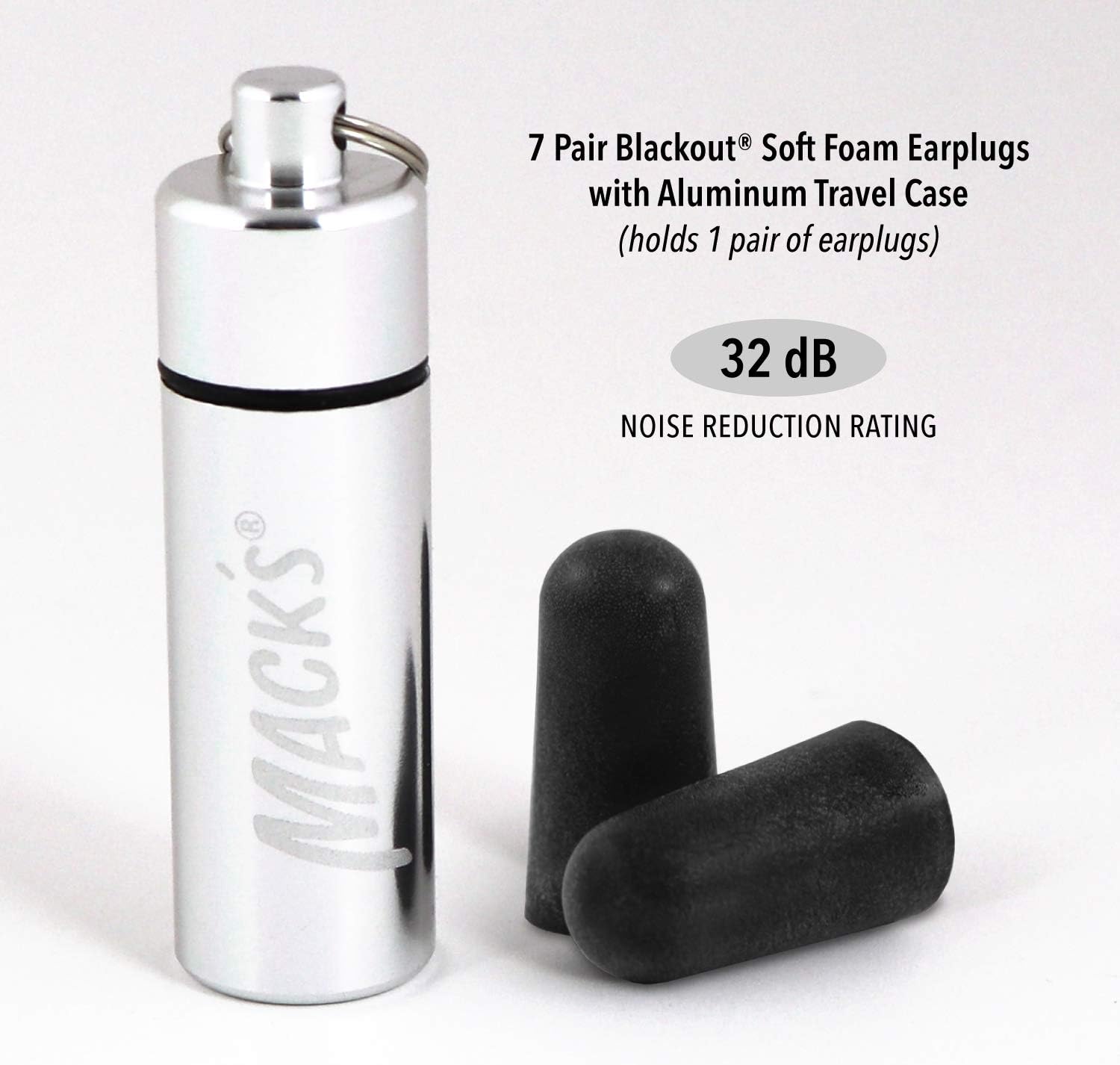 Mack'S Blackout Soft Foam Earplugs, 7 Pair With Travel Case - 32 Db Highest Nrr, Comfortable Ear Plugs For Concerts, Jam Sessions, Nightclubs, Loud Events And Shooting Sports