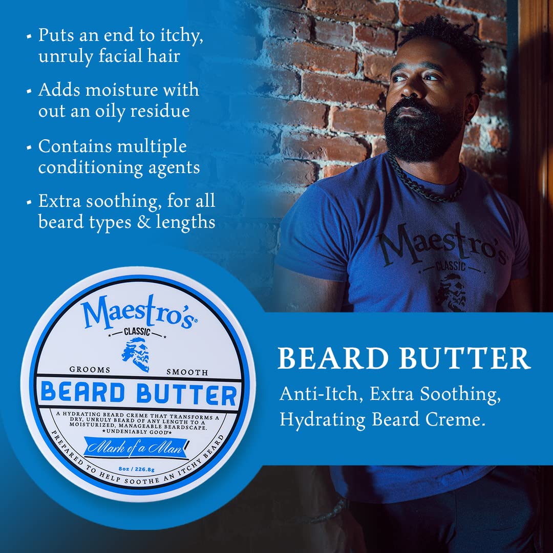 Maestro'S Classic Beard Butter | Anti-Itch, Extra Soothing, Hydrating Beard Creme For All Beard Types & Lengths- Mark Of A Man Blend, 2 Ounce