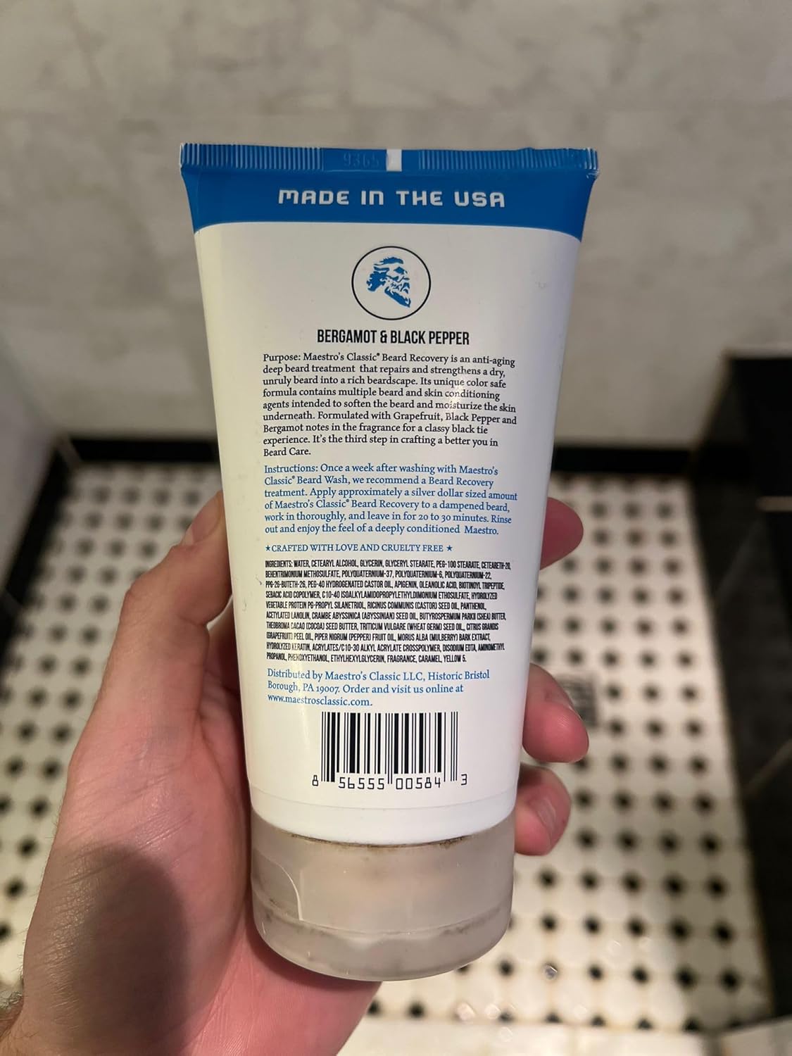 About this item ABOUT OUR PRODUCT: Maestro's Classic Speakeasy Blend Beard Recovery offers a unique blend that evokes a sense of nostalgia with its distinctive aroma. Enhanced with gentle notes reminiscent of classic times, it effectively softens and conditions facial hair while providing moisture to the skin beneath. Achieve all-day shine, style, and control with ease. Our product is a deep-conditioning beard treatment designed for weekly use after cleansing with our Beard Wash. Enhance your grooming routine by pairing our Beard Recovery with Beard Butter, Beard Wash, Beard Oil, and other compatible products to optimize your beard care regimen. Our Beard Recovery is an excellent choice for gifting to the special men in your life. For best results, use our Beard Recovery treatment once a week after cleansing with Maestro’s Classic Beard Wash. Apply an appropriate amount to a dampened beard, ensuring thorough coverage, and leave in for 20 to 30 minutes before rinsing. Experience the benefits of a deeply conditioned beard with Maestro’s Classic Beard Recovery. See more product details,ABOUT OUR PRODUCT: Maestro's Classic Speakeasy Blend Beard Recovery offers a unique blend that evokes a sense of nostalgia with its distinctive aroma. Enhanced with gentle notes reminiscent of classic times, it effectively softens and conditions facial hair while providing moisture to the skin beneath. Achieve all-day shine, style, and control with ease,Our product is a deep-conditioning beard treatment designed for weekly use after cleansing with our Beard Wash,Enhance your grooming routine by pairing our Beard Recovery with Beard Butter, Beard Wash, Beard Oil, and other compatible products to optimize your beard care regimen,Our Beard Recovery is an excellent choice for gifting to the special men in your life,For best results, use our Beard Recovery treatment once a week after cleansing with Maestro’s Classic Beard Wash. Apply an appropriate amount to a dampened beard, ensuring thorough coverage, and leave in for 20 to 30 minutes before rinsing. Experience the benefits of a deeply conditioned beard with Maestro’s Classic Beard Recovery