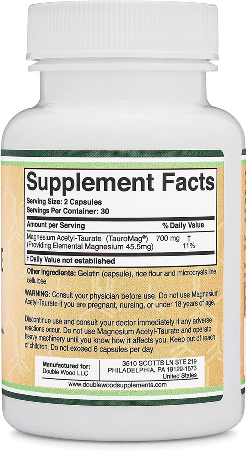 Magnesium Acetyl-Taurate (Ata Mg, Tauromag) Novel And Patented Form Of Magnesium For Pms And Cramp Relief (60 Capsules, 350Mg) Pms Relief Magnesium Supplement By Double Wood Supplements