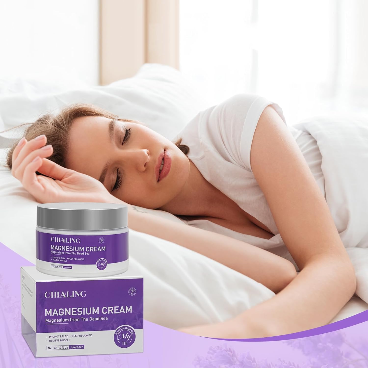 Magnesium Cream, Magnesium Lotion From The Dead Sea - Natural Ingredients - Made In Usa - Use Day And Night, Lavender Magnesium Cream, 4 Oz