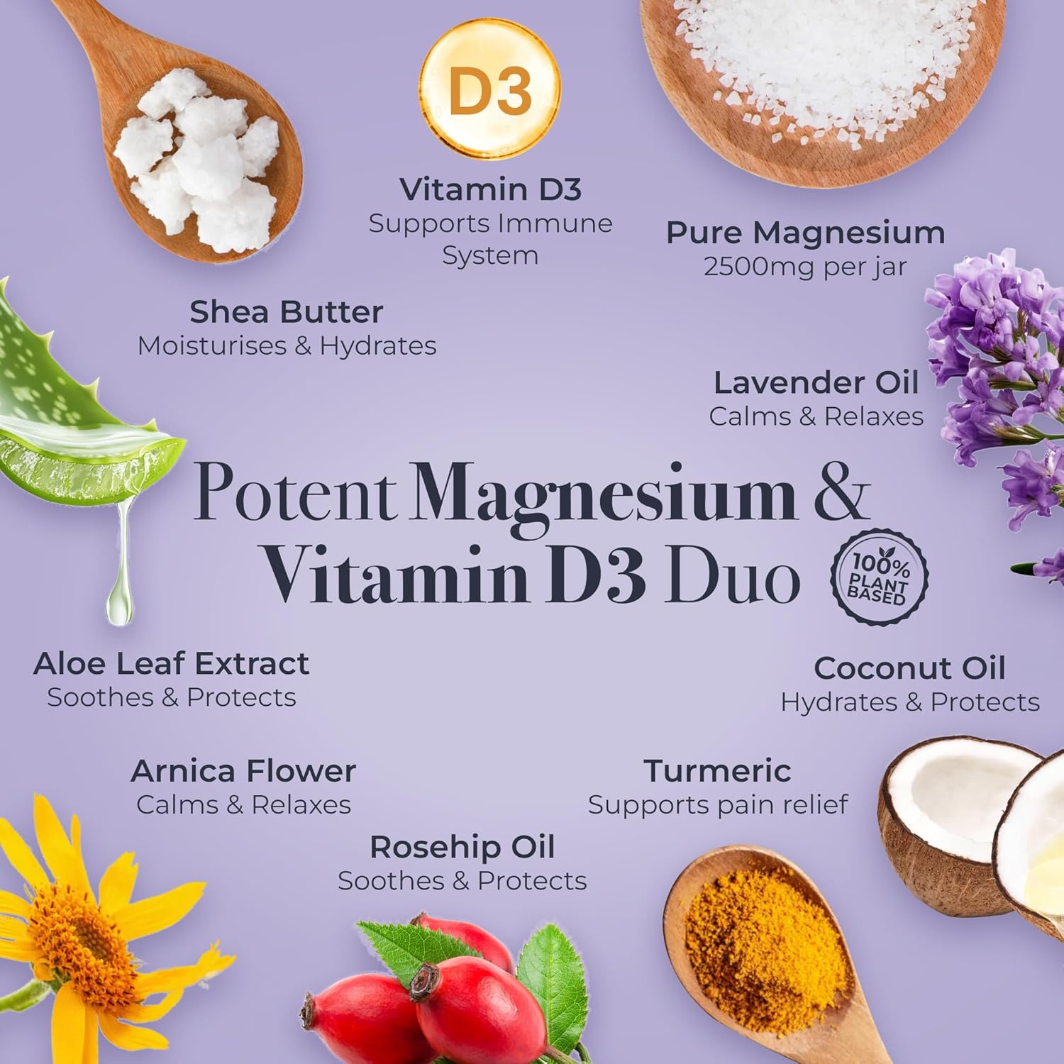 Magnesium Cream With Vitamin D3 [4 Fl Oz] - Magnesium And Vit D Lotion - Turmeric & Arnica Calm Cream - Magnesium And Vit D3 - Lavender