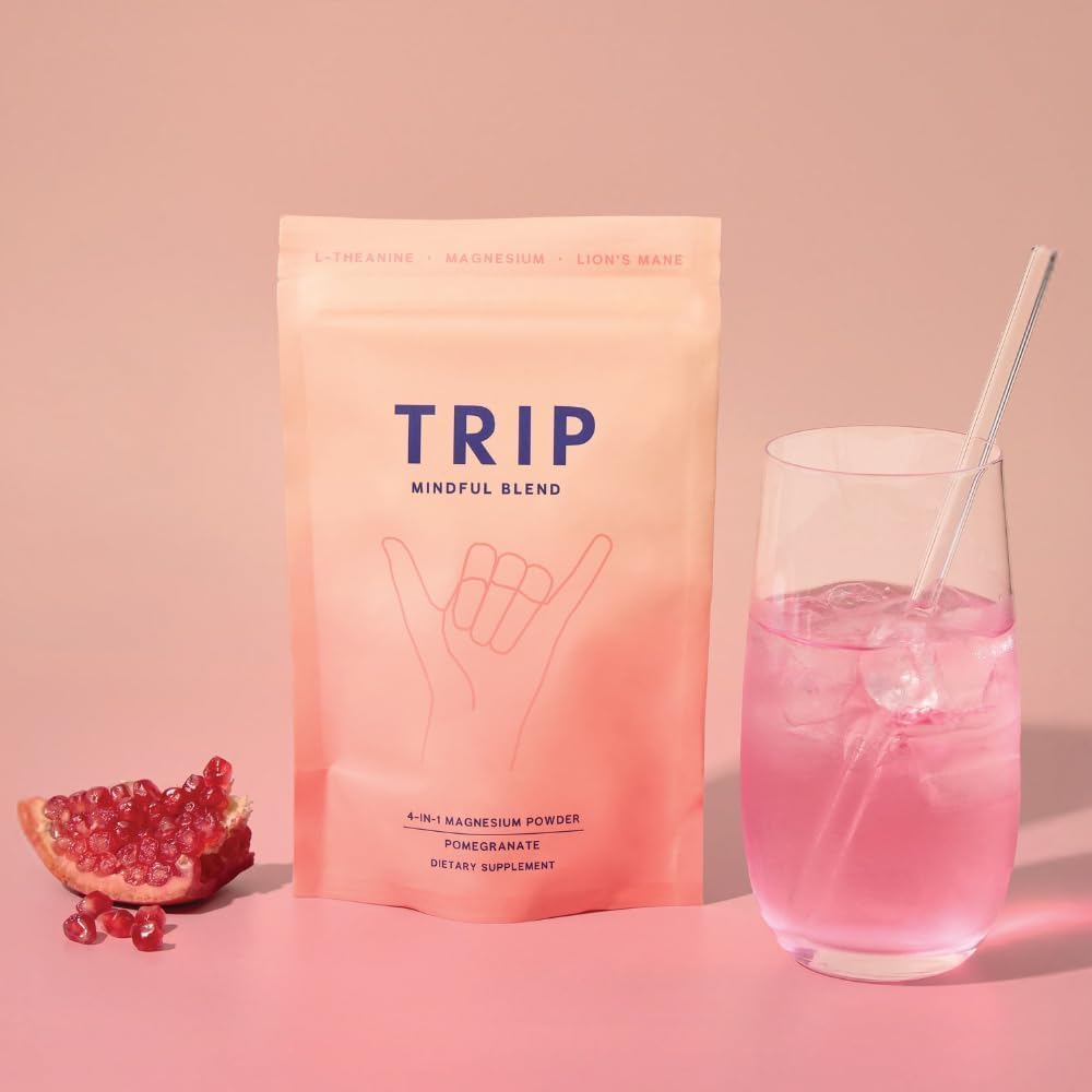 Magnesium Glycinate 4-In-1 Complex - Trip 7500Mg Magnesium Powder With L-Theanine & Lion’S Mane, Delicious Pomegranate Orange Blossom Flavour, Sugar Free, 1 Pack - 30 Drink Mix Servings