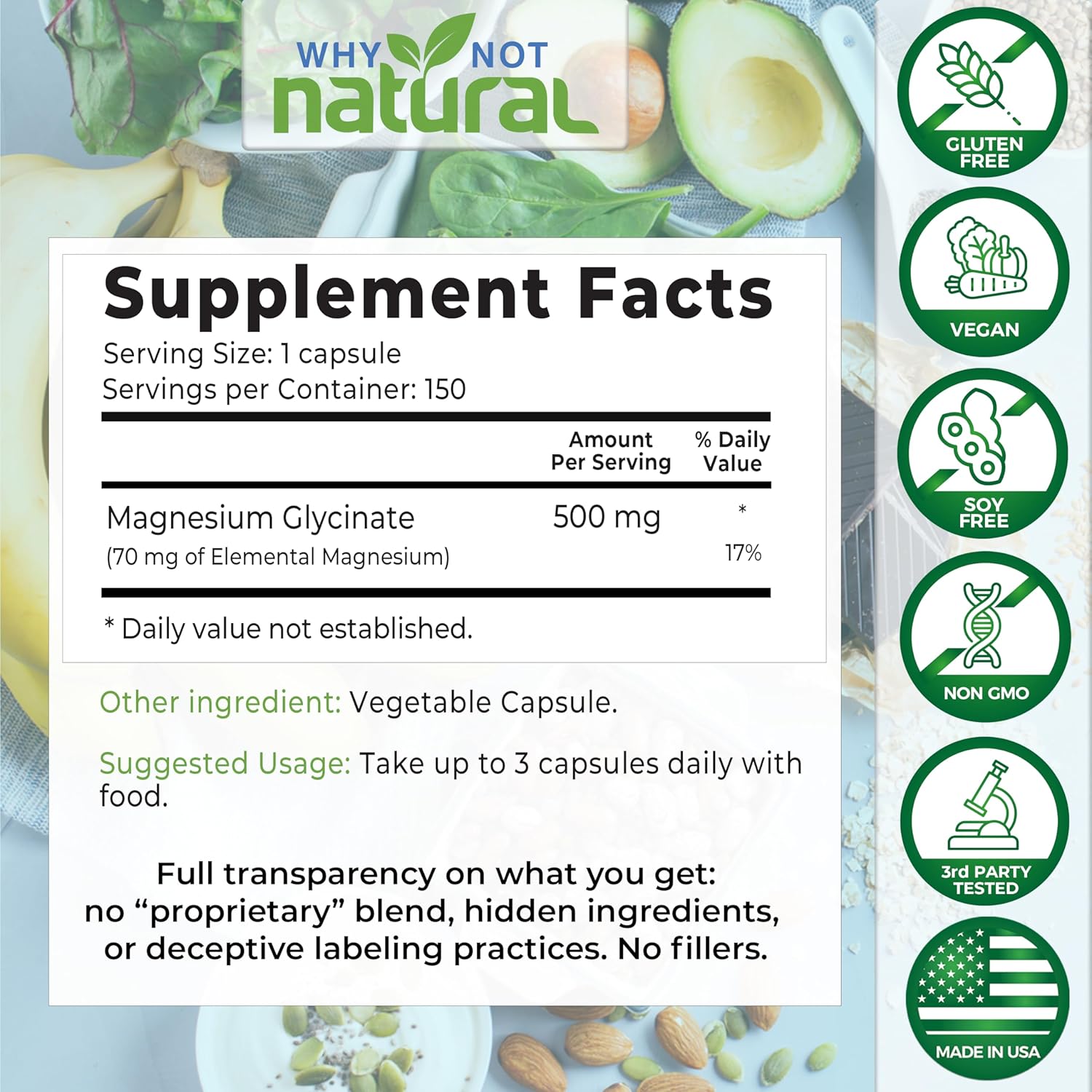 No Filler Or Additives - We Don'T Use Any Fillers, Excipients, Allergens, Or Preservatives In Our Magnesium Glycinate. Most Other Brands Use Magnesium Stearate And Other Additives, But At Why Not Natural, We Give You The Purest Magnesium With Absolutely Nothing Added