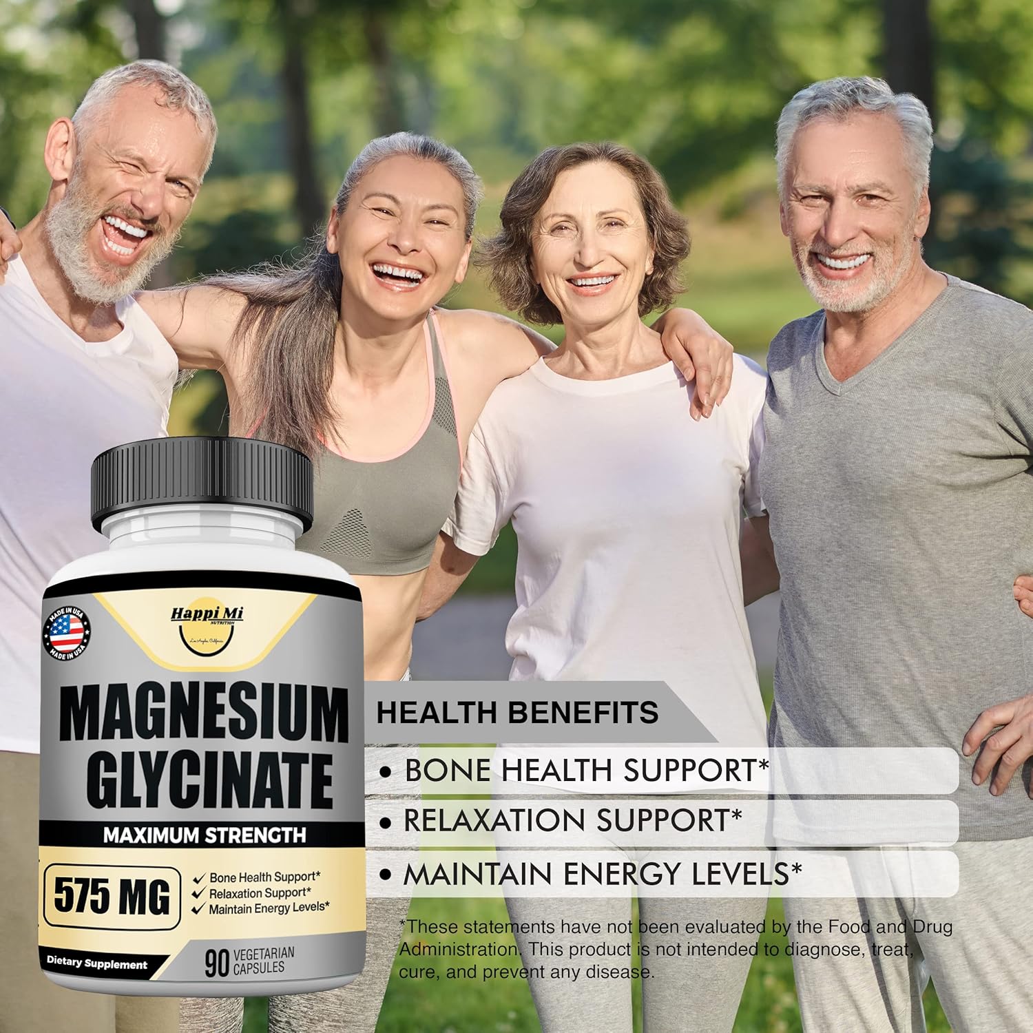 Magnesium Glycinate 575Mg Per Serving, Essential Mineral Supplements, Muscle & Bone Health Support, Promote Relaxation & Balance Mood, Non-Gmo - 90 Vegan Capsule 45 Servings