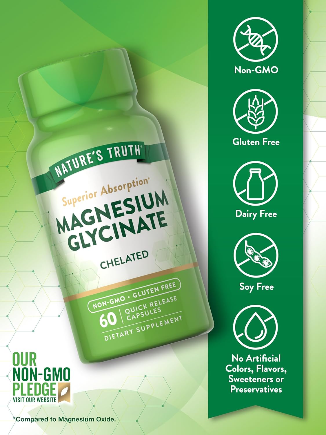 Magnesium Glycinate Capsules | 200Mg | 60 Count | Chelated Superior Absorption Formula | Non-Gmo & Gluten Free Supplement | By Nature'S Truth