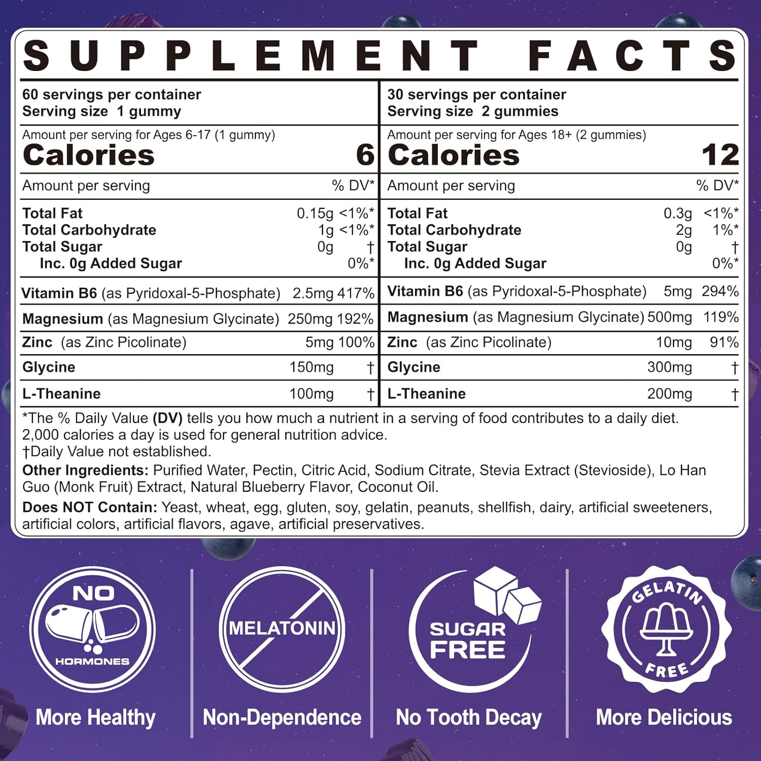 POWERFUL CALMING & RELAXING EFFECT - Our sleep gummies contain 5 sleep aids for adults without melatonin, to maximize calming effects and support sleep quality better than single-element supplements. Glycine, an inhibitory neurotransmitter, may support calmness and restful sleep by helping to reduce brain hyperactivity. L-Theanine promotes relaxation by supporting alpha brainwave activity. Added Vitamin B6 and zinc help support overall brain health. Together, these ingredients work synergistically with magnesium to promote relaxation and help prepare the body for a restful night
